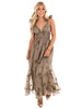 Embrace a vision of whimsical elegance with our Floral Embroidered Maxi Dress. Monochromatic flowers adorn this romantic crepe dress, featuring a plunging neckline and fluttered ruffled straps. The wrapped empire waist and ruffled maxi bottom add flirty touches, while cut-out sides and an open back with an adjustable crisscross tie add a touch of intrigue. With a lower back invisible zipper, this dress is both stunning and functional.
