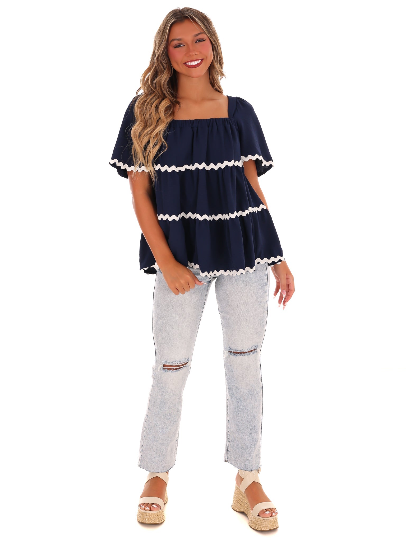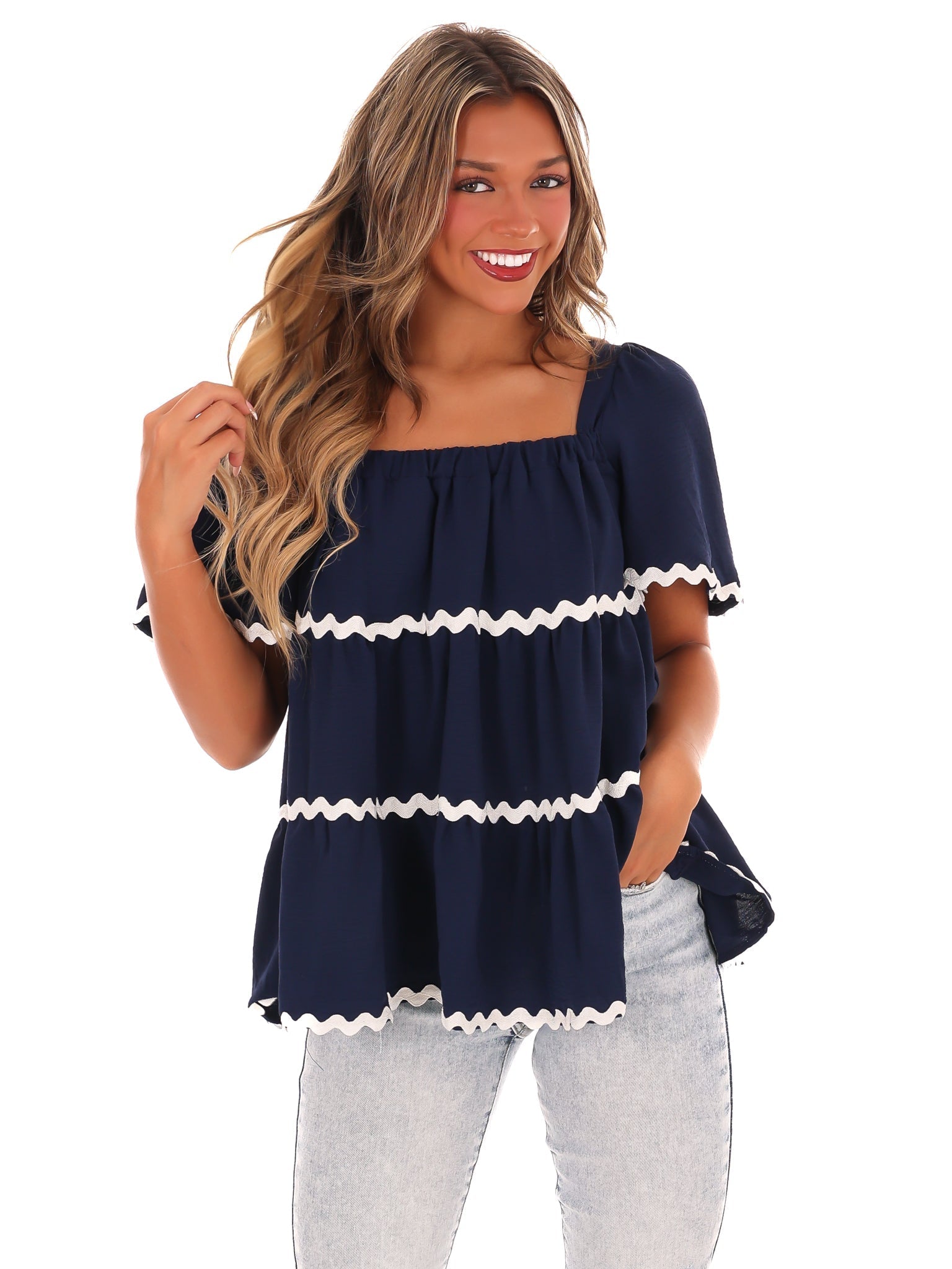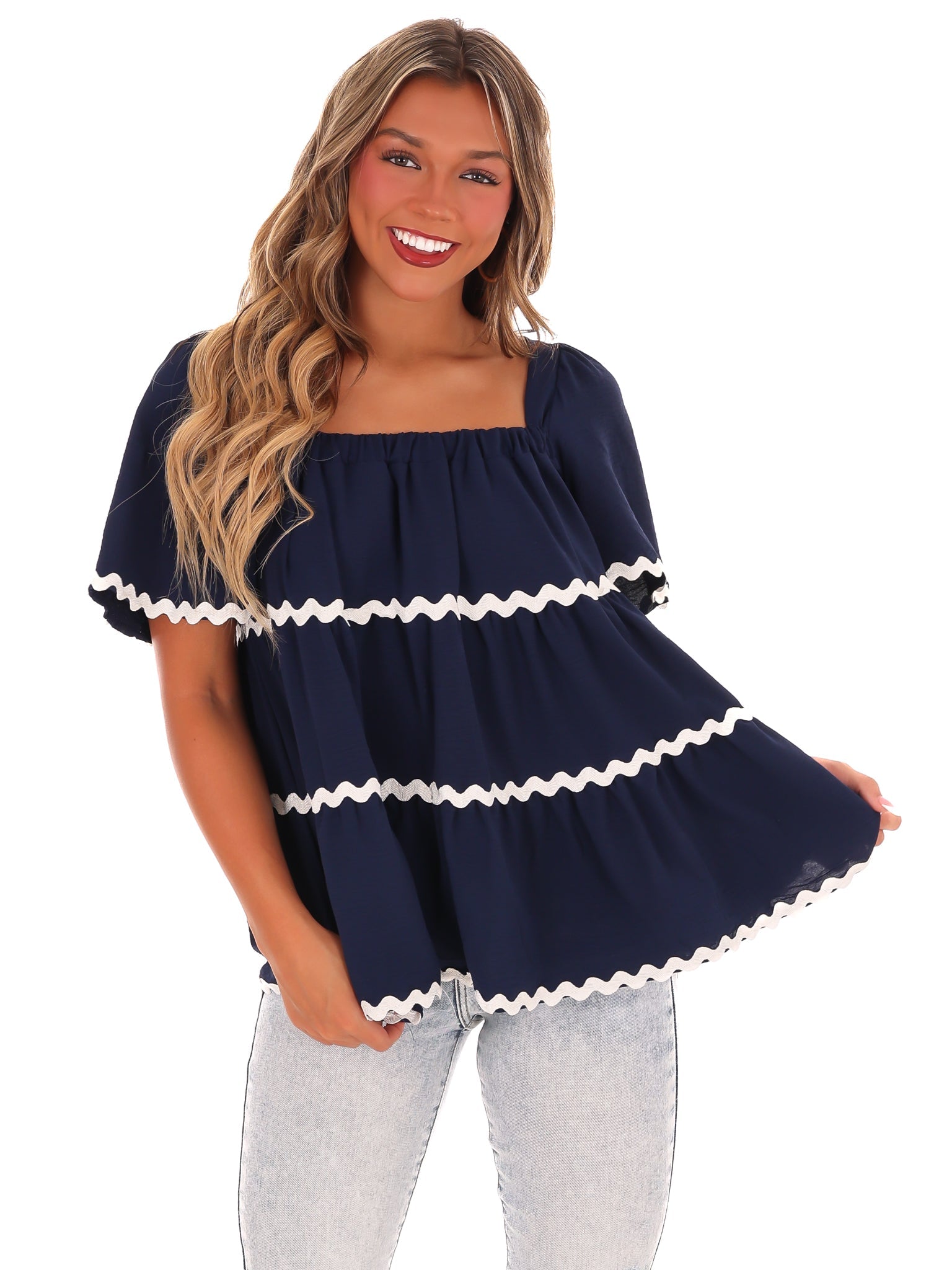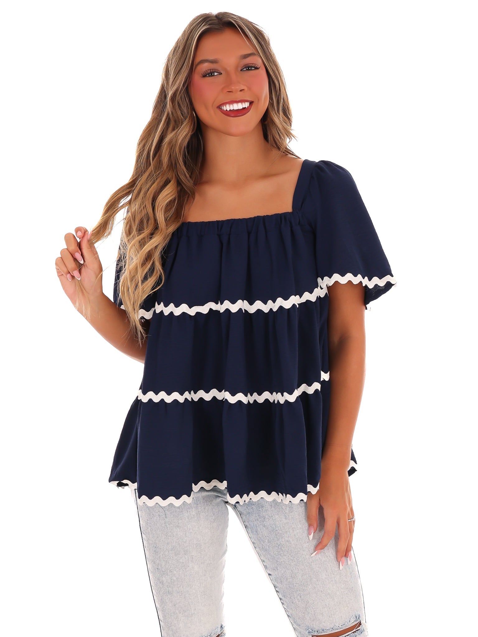 Get ready to flounce and flutter in our All I Want to Do Tiered Top! This woven top features playful flounce sleeves and ric rac trim, adding a touch of whimsy to your outfit. Perfect for any occasion, this top will make you stand out and have all eyes on you!