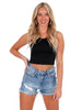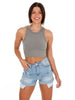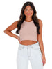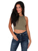 Chevron crop top High neckline Banded hem 92% Nylon, 8% Spandex