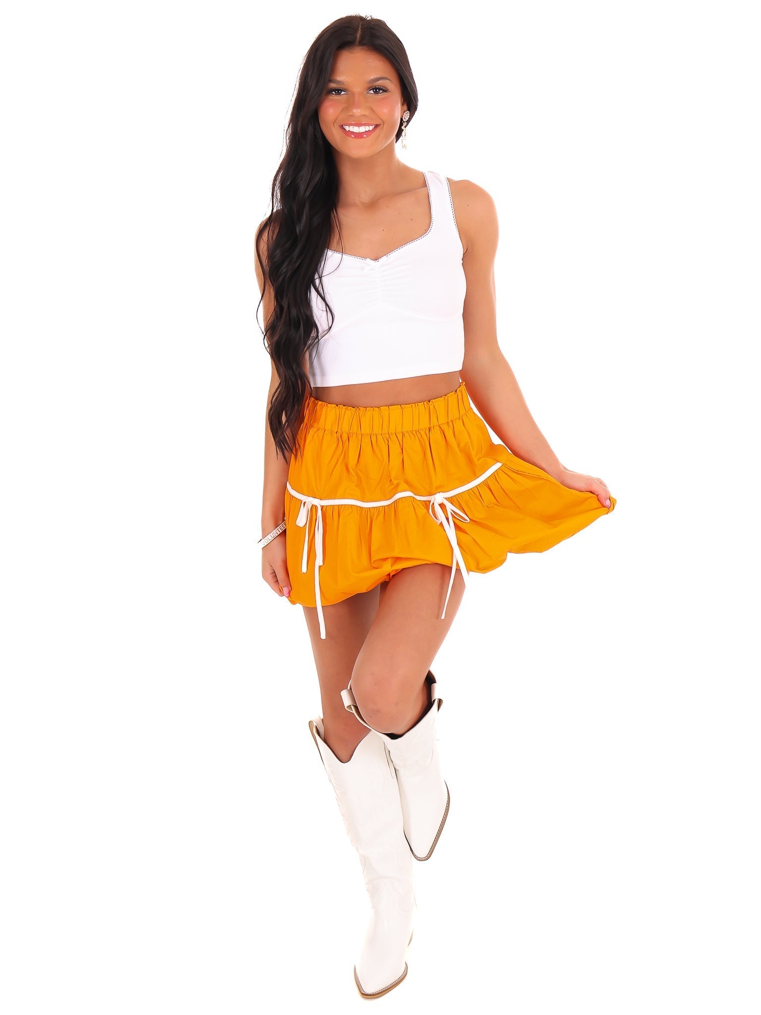 This slim fit crop top from our Tennessee football collection is a sure victory. The scoop neck and open back add a touch of sass, while the ribbon front detail adds a playful twist. This ribbed lace tank top is a solid choice for any casual outing.