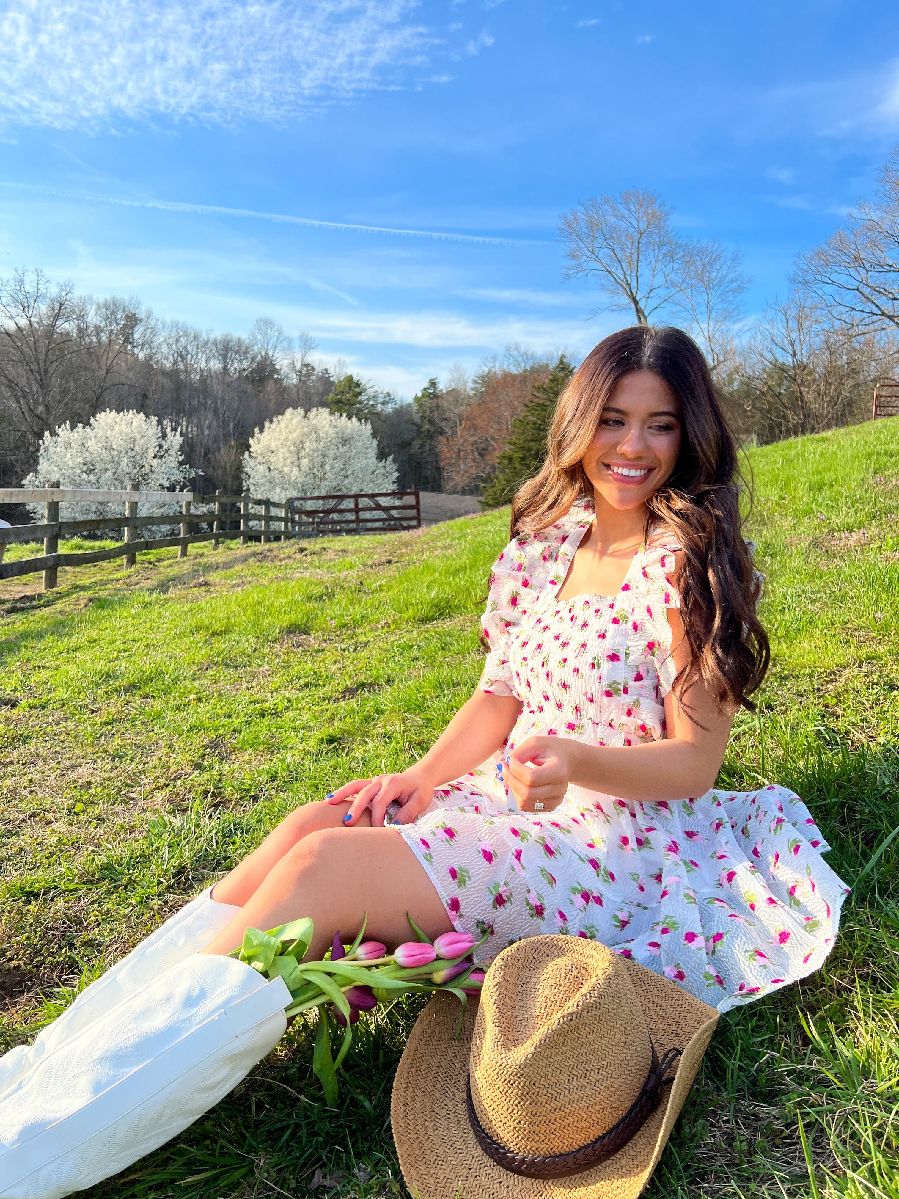 You will be just smitten in this Maddison mini dress! The Maddison Dress features a tie closure and smocked back panel to adjust to your comfort, a ruffled sleeve, and a ruffled V neckline. The Maddison is structured with a bottom ruffled tier for a flattering fit! She looks great paired with a big earring and your favorite heels!