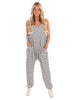 Get ready to make a statement with the Cassy Stripe Jumpsuit. This oversized, casual jumpsuit features a unique striped design and convenient pockets. Made with a comfortable blend of cotton, polyester, and spandex, it's perfect for any occasion. Don't miss your chance to rock this look!