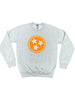 Ash sweatshirt Crew neckline Banded hem Banded cuffs Orange and white Chenille patch tri-star with gold glitter...