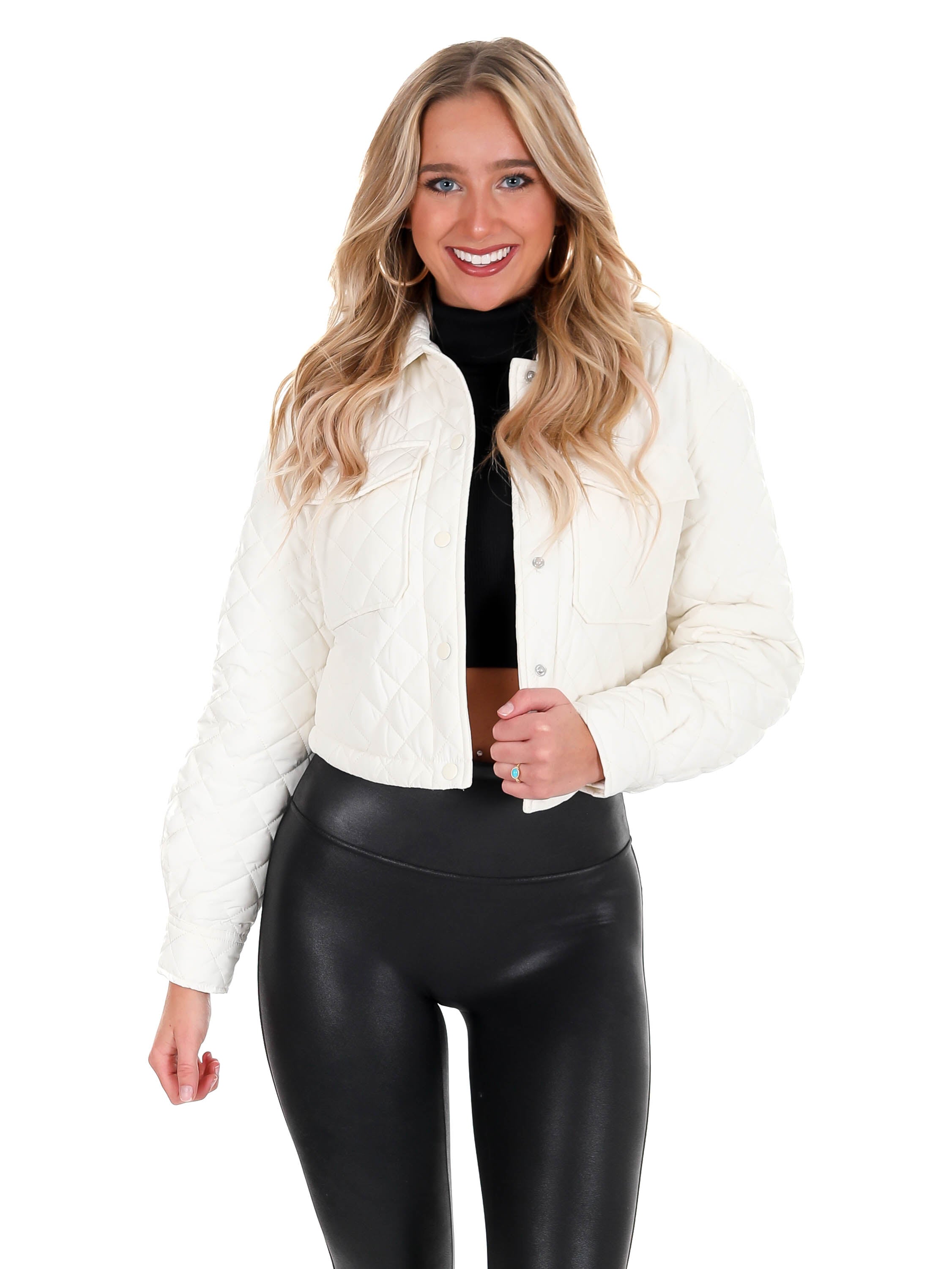 Woven jacket Bust pocket Slightly cropped Lightweight Button up style 100% Polyester Model is wearing a Small...