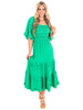 Get ready to turn heads with the Coming Home Midi Dress! With its playful bell sleeves, square neck, and smocked tiered design, this midi woven dress is sure to make a statement. Perfect for any occasion, this dress is both stylish and comfortable, making it a must-have in your wardrobe.