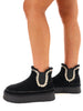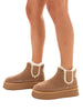 Step up your shoe game with our Crochet Platform Boot. The slip on design and side stretch elastic provide a comfortable fit, while the faux sherpa lining keeps your feet warm. With a unique crochet stitching lining, these boots are sure to make a statement.