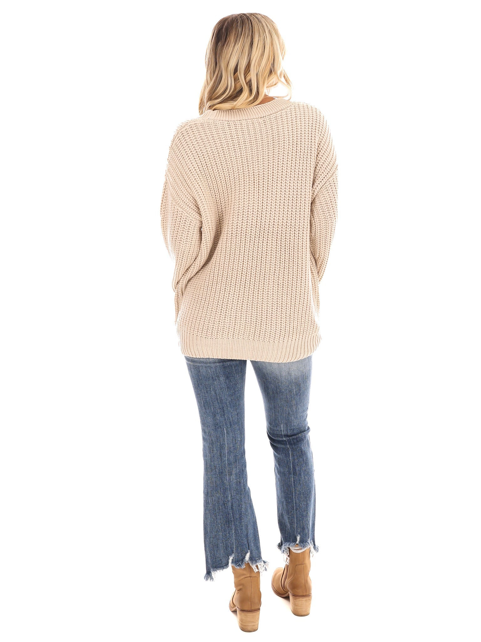 This solid knit cardigan with ribbed cuffs is a must-have for any fashion-forward individual. Its unique design includes contrasting denim flap pockets with added trim for an extra touch of style. Perfect for any age range, this relaxed fit cardigan will keep you looking cool and cozy.