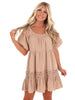 Effortless Charm: This charming dress features a round neck, pleated cotton fabric, smocked detailing, and puff short sleeves for a flirty and feminine look. Perfect for any occasion, it effortlessly exudes charm and style.