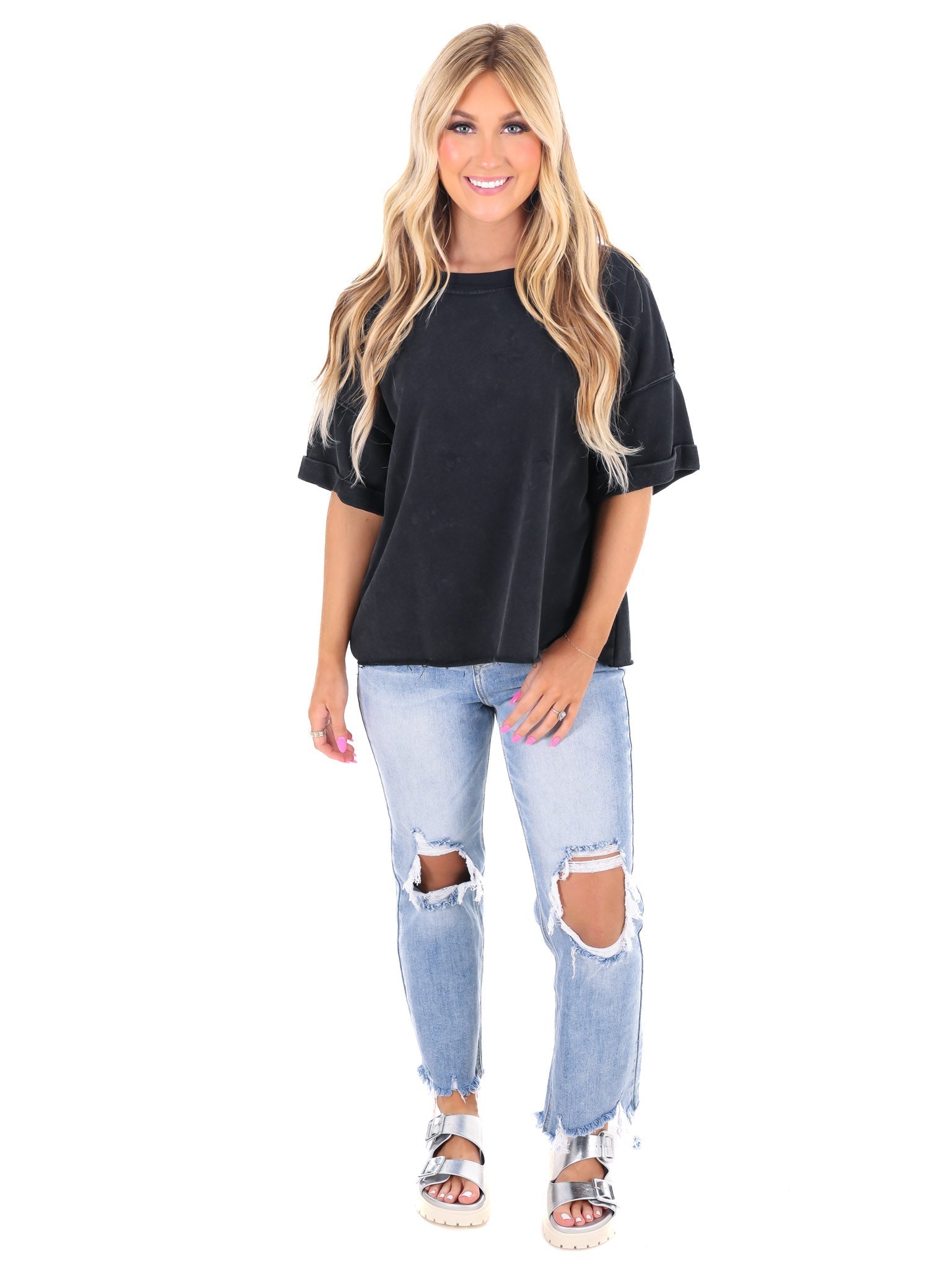 Unleash your inner style with the Everything is Now Boxy Top. This playful top features a boxy cut and washed French Terry material, elevating your comfort game. The cut edge details and short folded sleeves add a touch of quirkiness to your everyday look. Get ready to be the trendsetter with this one-of-a-kind top!
