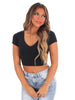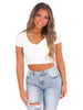Stay effortlessly stylish with our Follow You V-Neck Crop Top. This double-layered top features a flattering V neckline, short sleeves, and removable pads for added comfort. Its stretchy material allows for easy movement, making it perfect for any occasion. Get ready to turn heads with this trendy crop top!