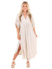 Make every moment count in this playful, collared midi dress. Designed with a linen cotton blend, it offers a comfortable fit with a side slit and shirring details for added style. Perfect for any occasion, this dress is sure to make you feel confident and stylish.