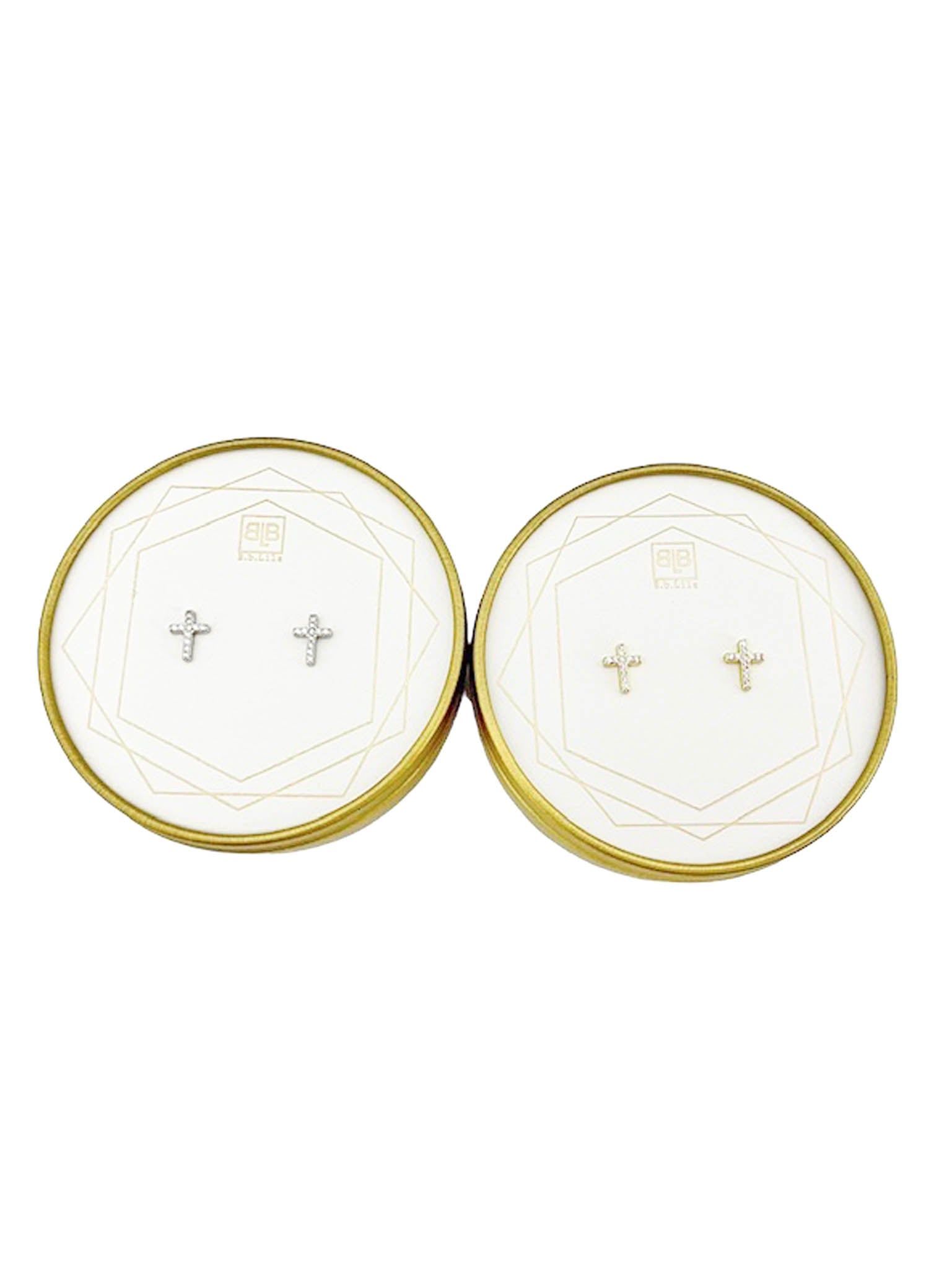 Add a stylish, symbolic touch to your everyday look with He Is Cross Studs. These delicate rhinestone cross studs come in both silver and gold to complement the color of your outfit. Make a statement of faith with a fashionable accessory.