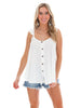 Elevate your wardrobe with this charming ruffle tank top. Featuring unique button details and a lightweight textured fabric, this loose fit style is perfect for warm weather days. Get ready to head into the clouds in style!