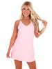 Get ready to play in style with our Just My Type Sporty Mini Dress. This playful dress features a built-in romper liner for added comfort and coverage. With a v-neckline, adjustable shoulder straps, and big patch pockets, this dress is both functional and fashionable. Finished with a clean hem, this dress is perfect for any occasion. (Just remember to channel your inner athlete!)