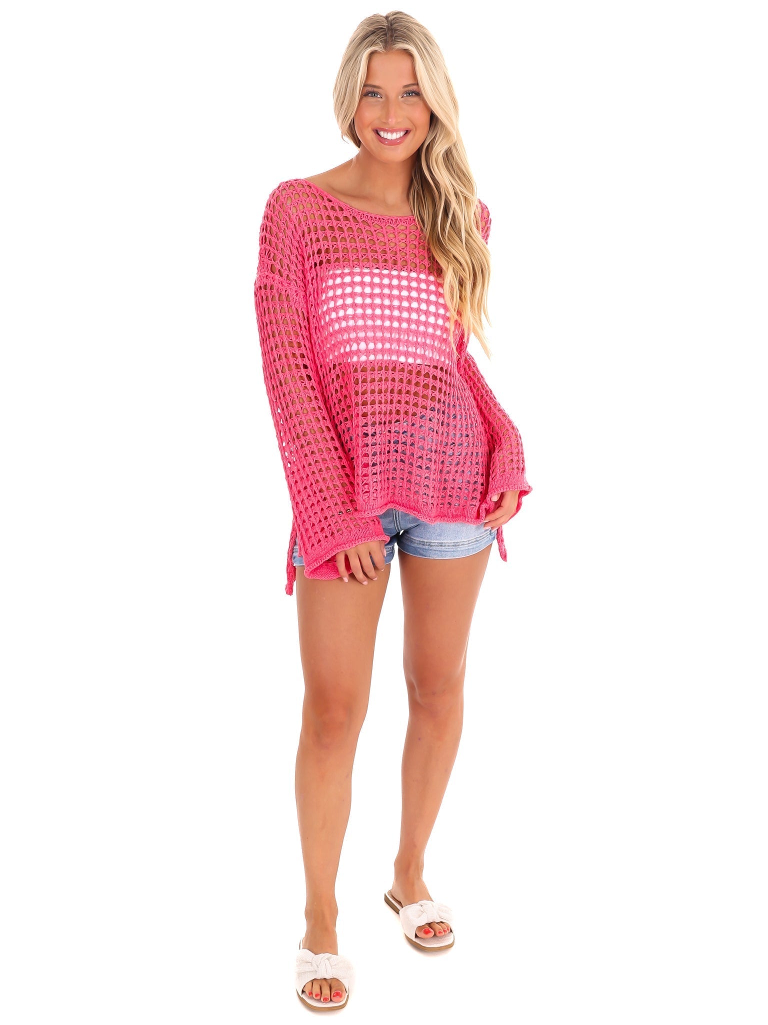 Add a touch of whimsy to your wardrobe with our Keep Hope Crochet Top. This versatile top features a crochet mesh knit design with a boat neck and bell sleeves. Wear it on or off the shoulder for a playful and stylish look that will inspire hope.