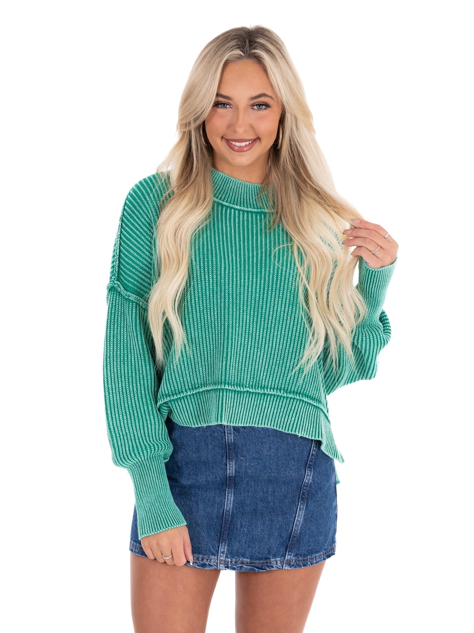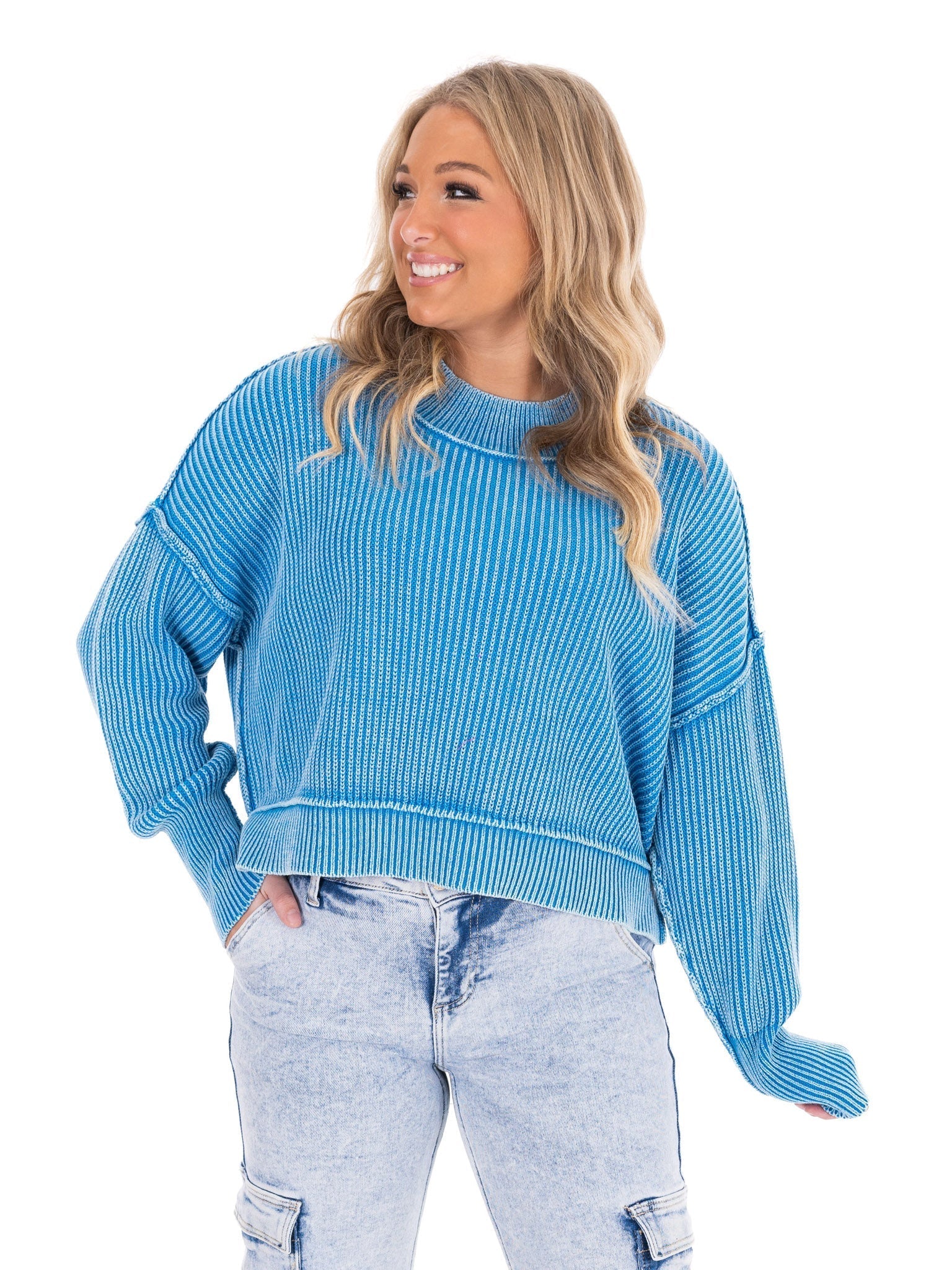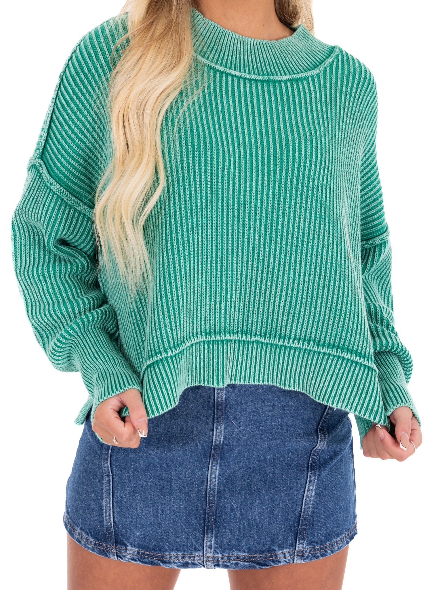 Get ready to add your Latest Obsession to your wardrobe with this playful and quirky cropped sweater. Made with the best quality material and a low gauge heavyweight, this washed side slit oversized sweater will keep you stylish and cozy all season long. You won't want to take it off!