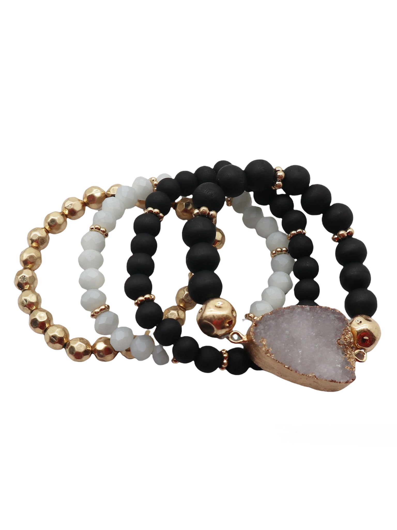 We love a cute druzy stone piece and this bracelet is no exception! Featuring gold accents and beaded wood bracelets you can wear together or separately, you don't want to miss this bracelet!