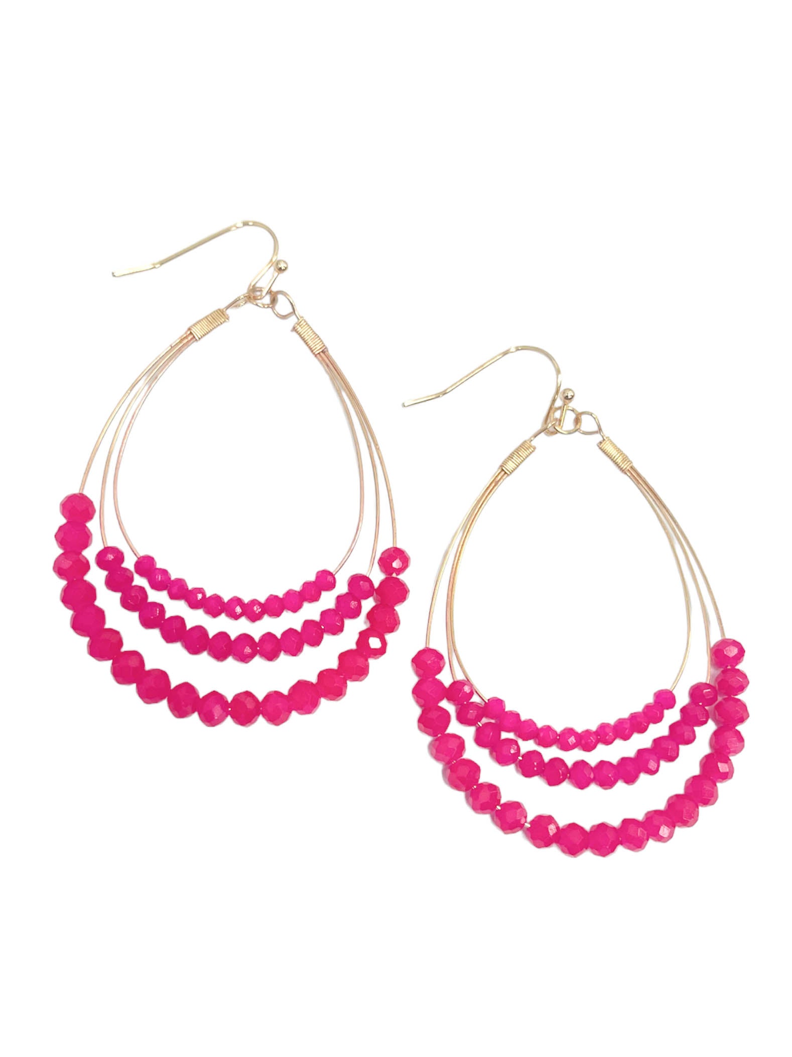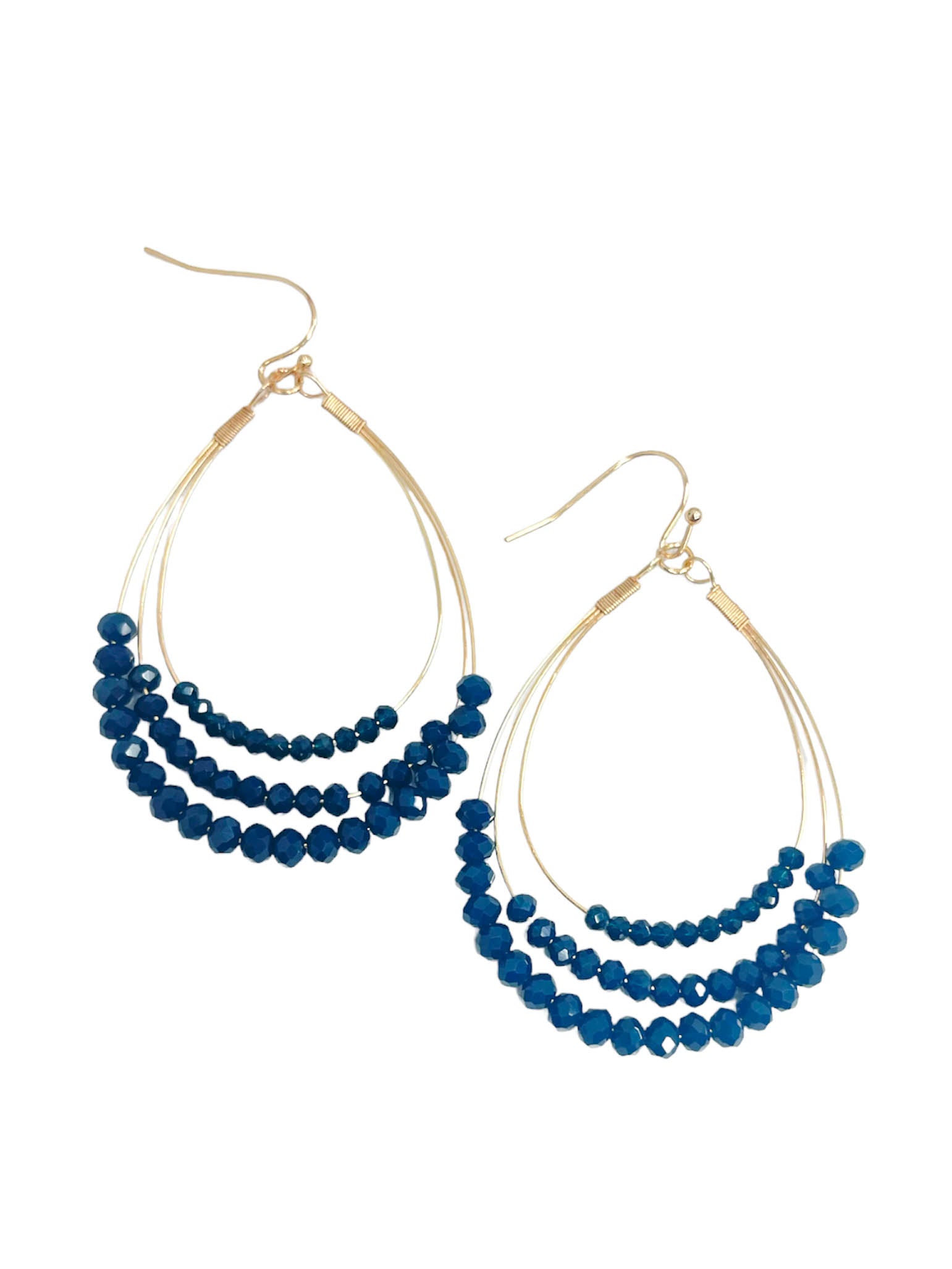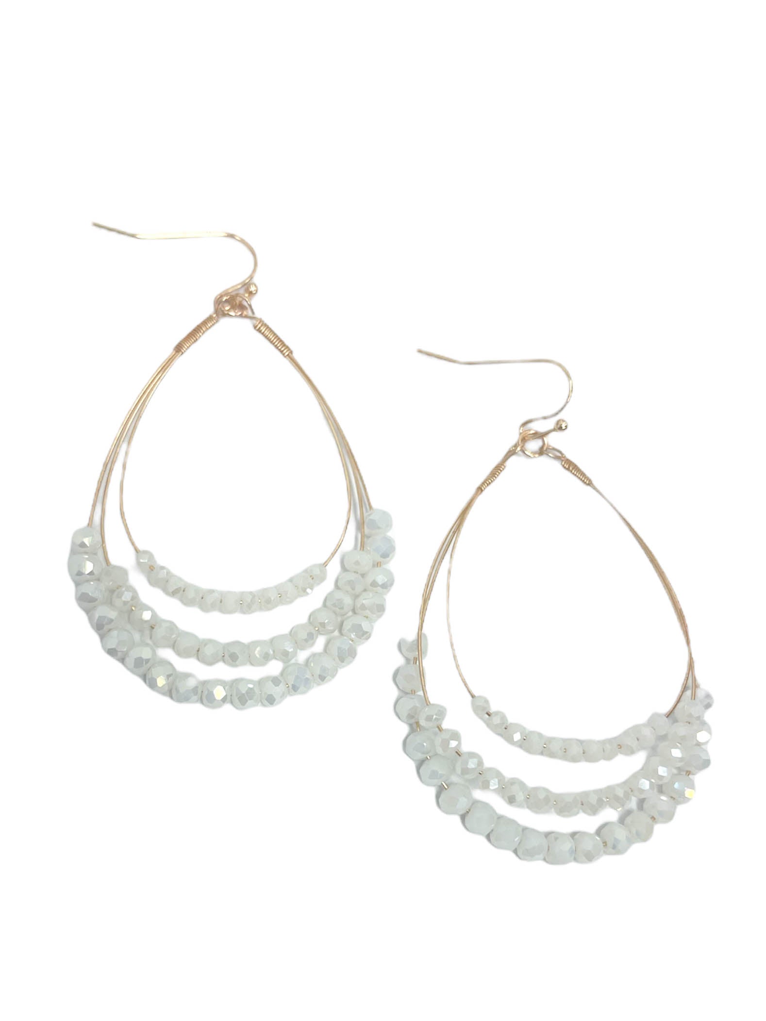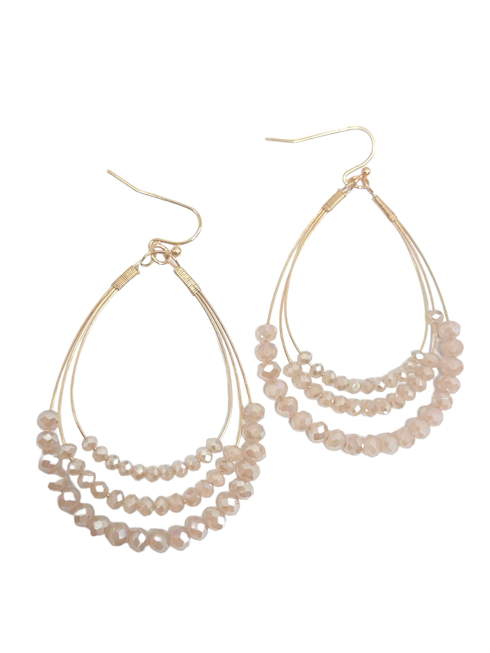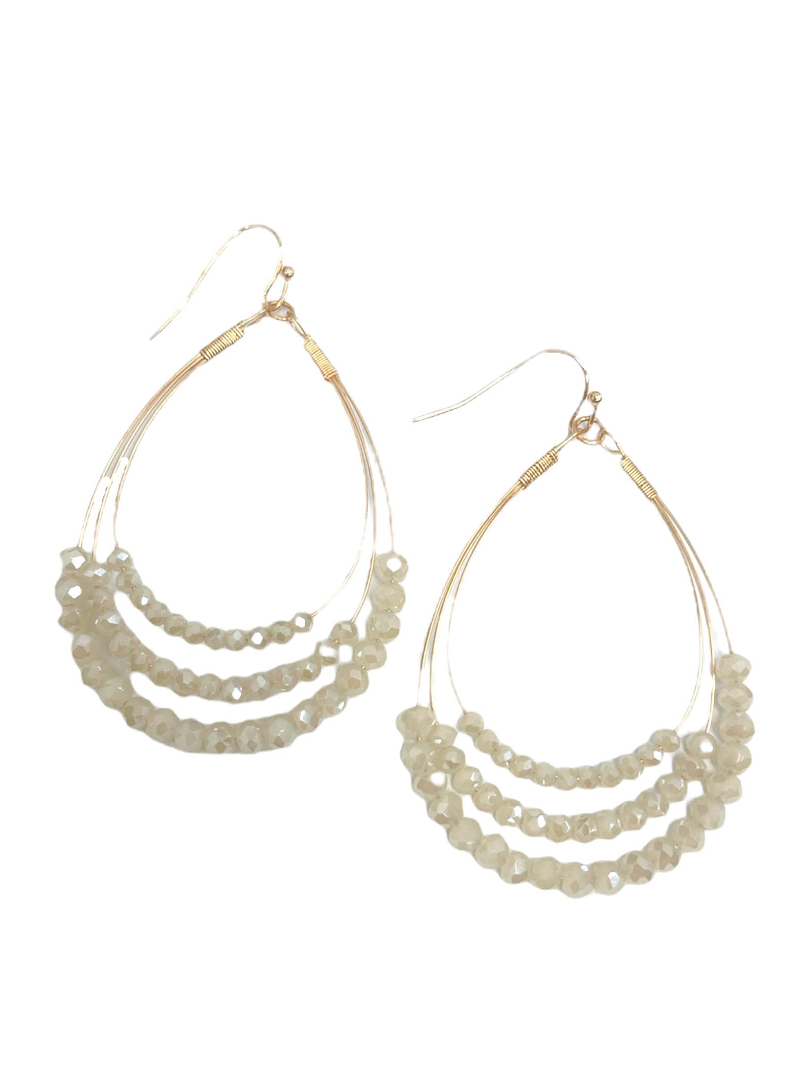 Teardrop earrings Layered wire Beaded layers Gold hardware Dangle