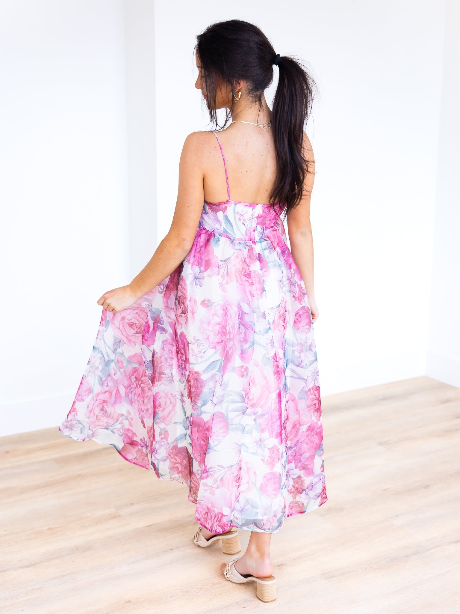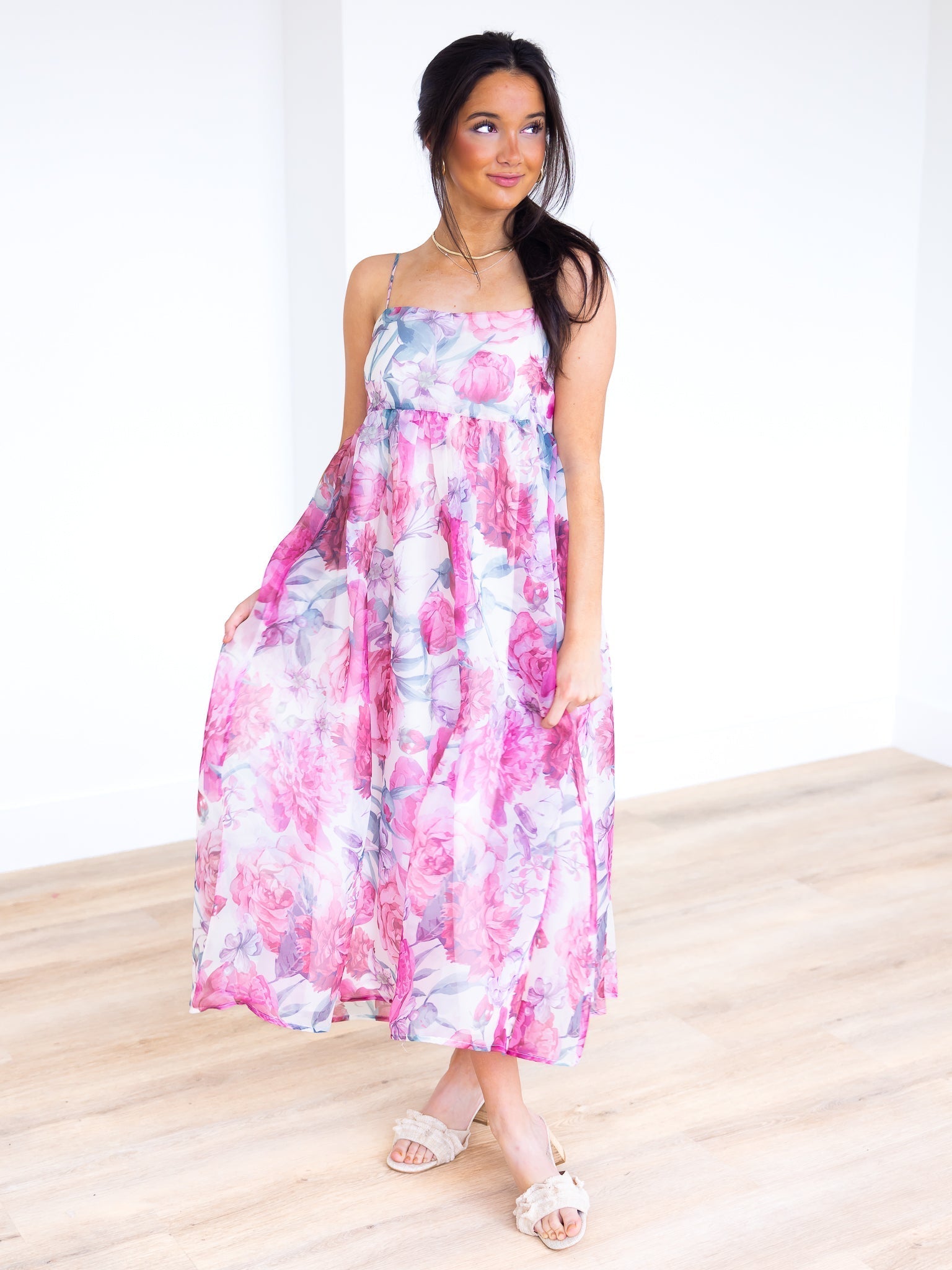 Blossom and bloom in the Let It Grow Floral Dress. With a playful babydoll silhouette and large rose print, this midi dress is perfect for summer days. Featuring a straight neckline, gathered empire waist, and invisible back zipper, it's a must-have for your wardrobe. (Your style will definitely be in full bloom with this dress!)