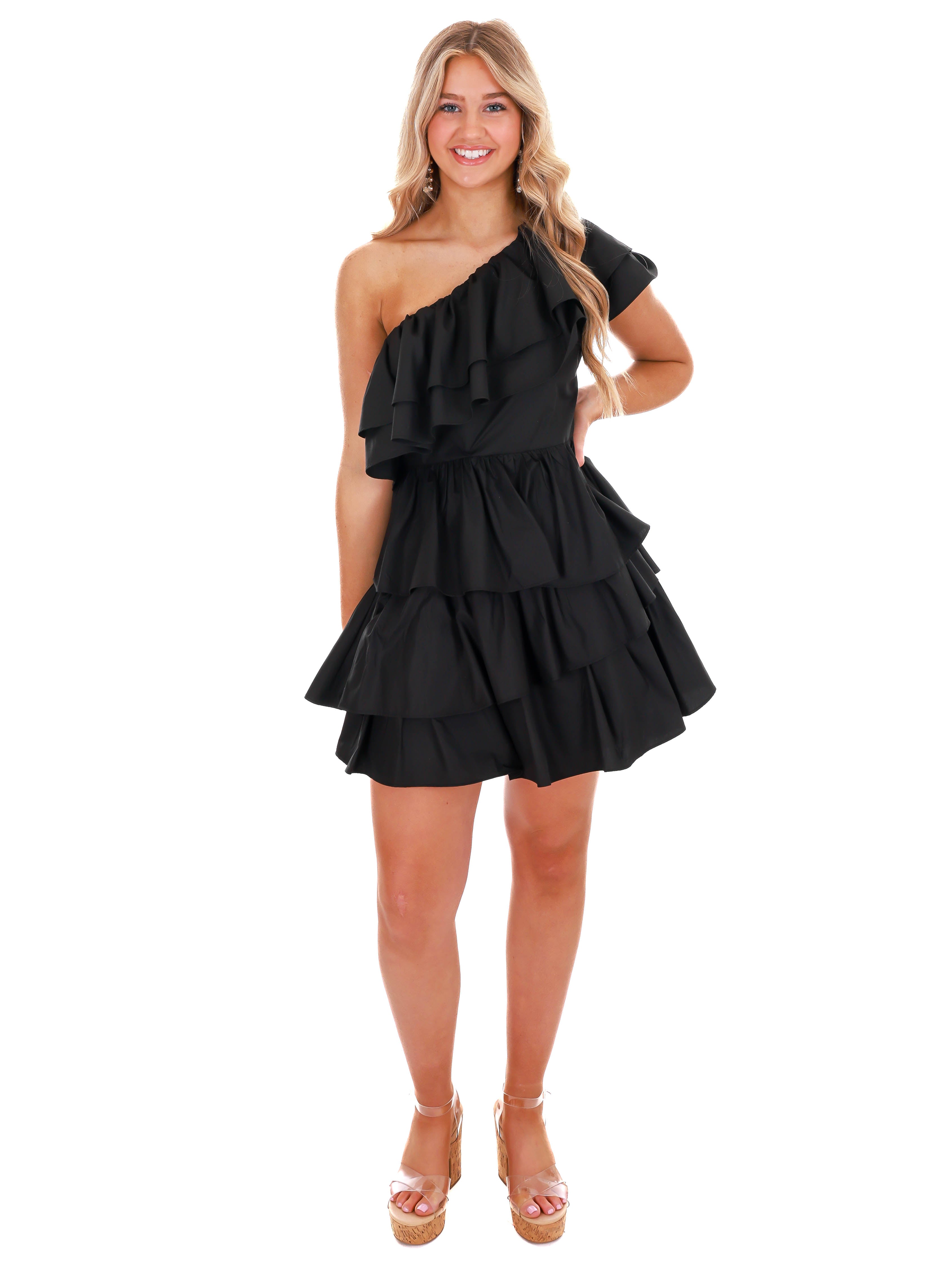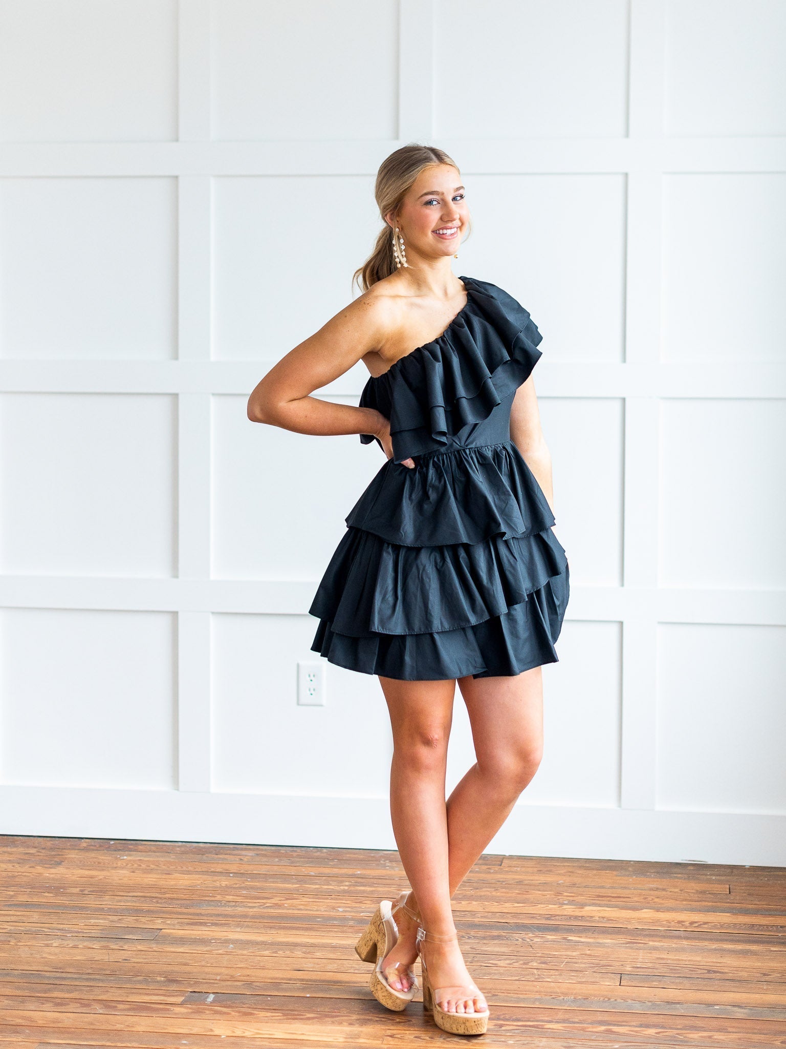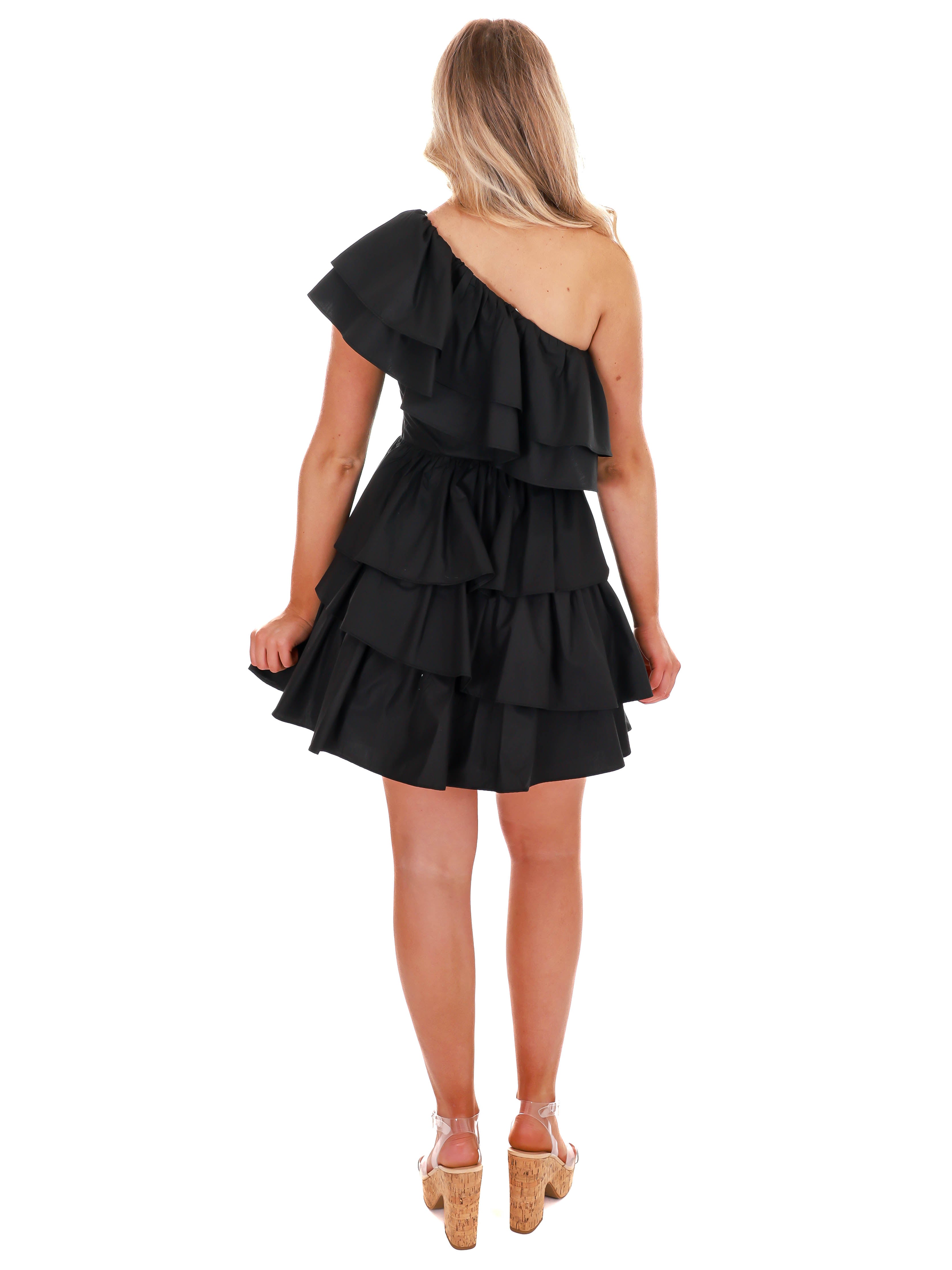 Let summer shine with the Light of Day One Shoulder Dress. Featuring oversized tiered asymmetrical ruffles and a one shoulder design, you will make a statement in style. Enjoy the sun in playful sophistication!