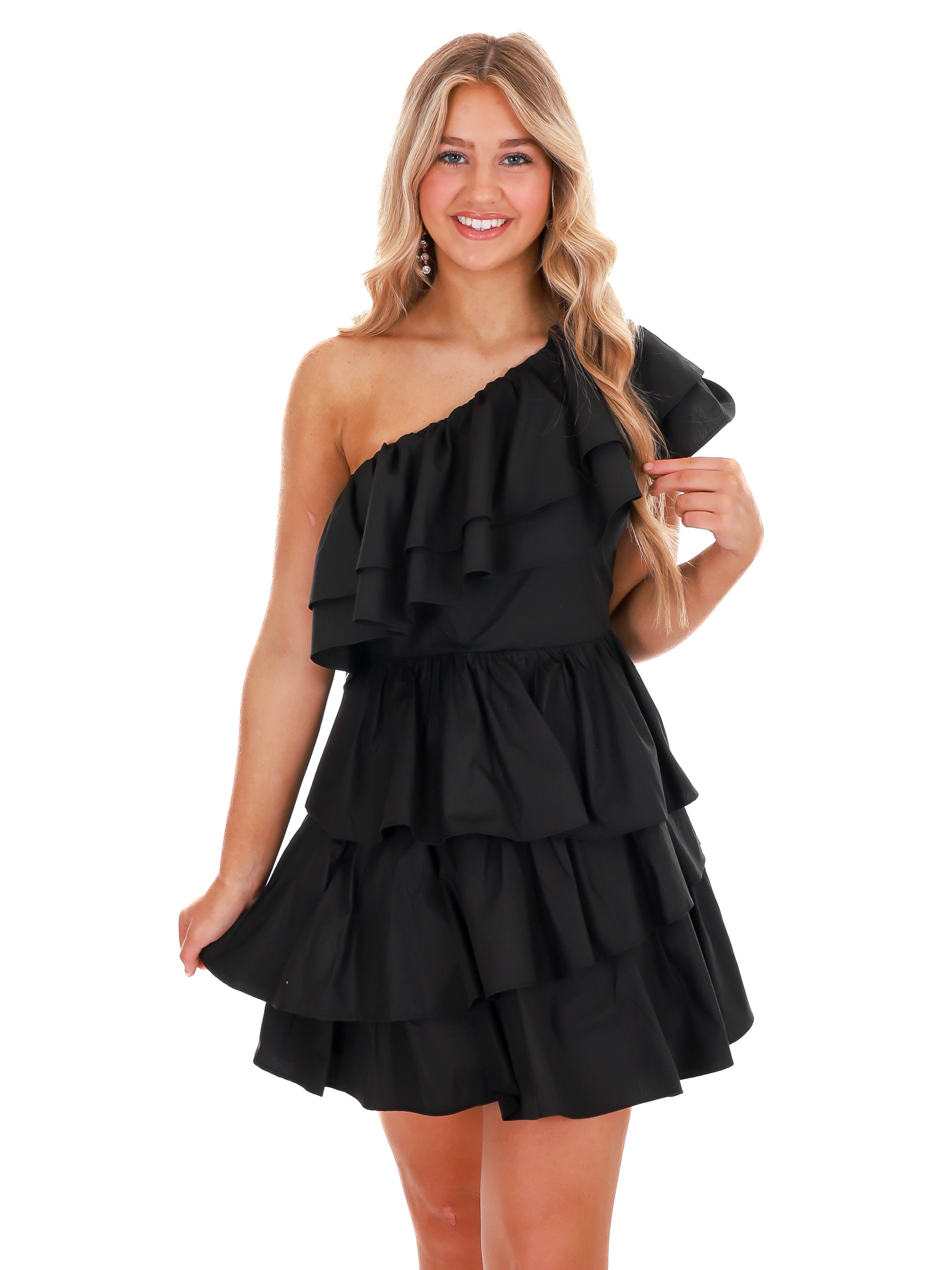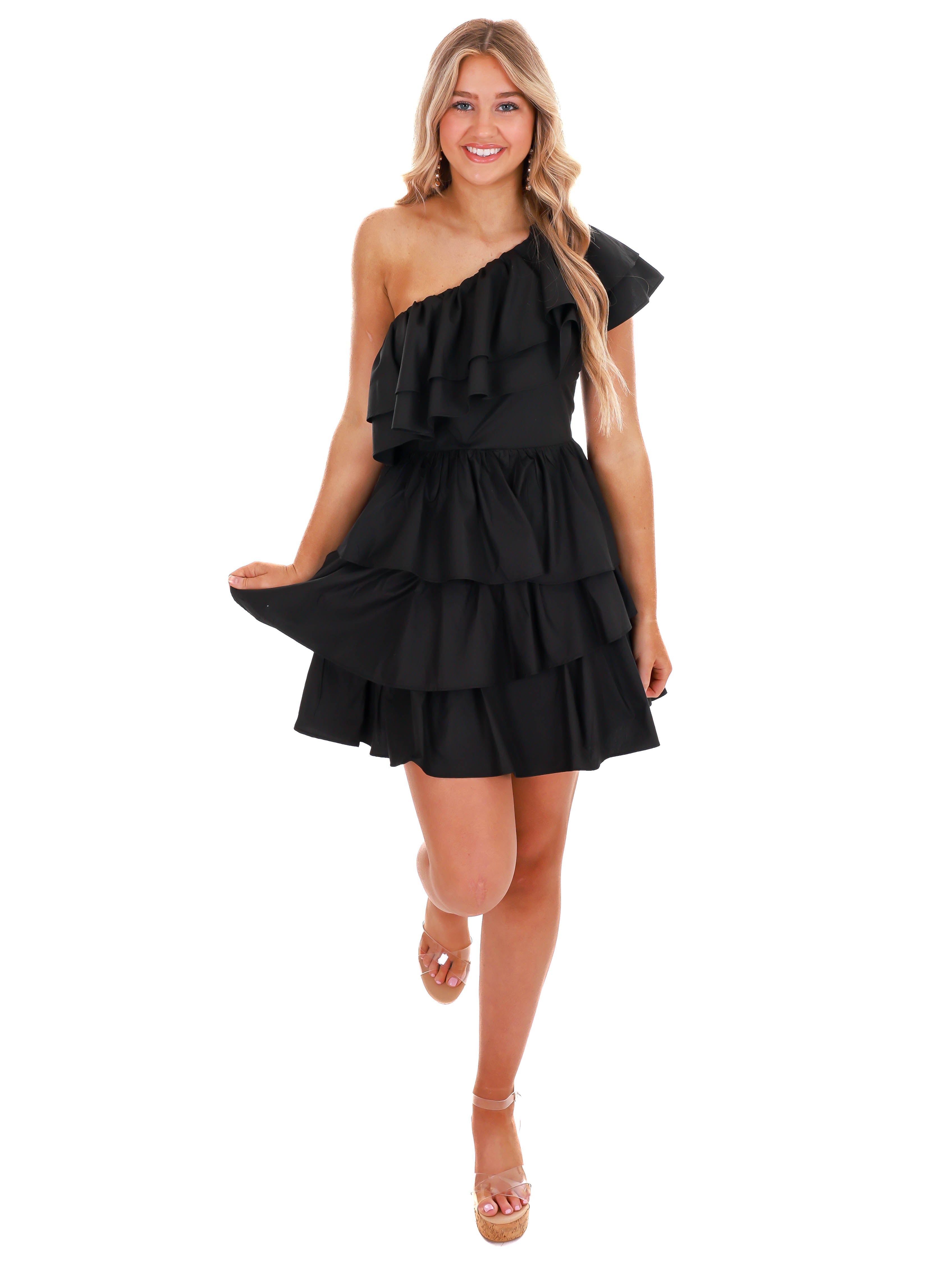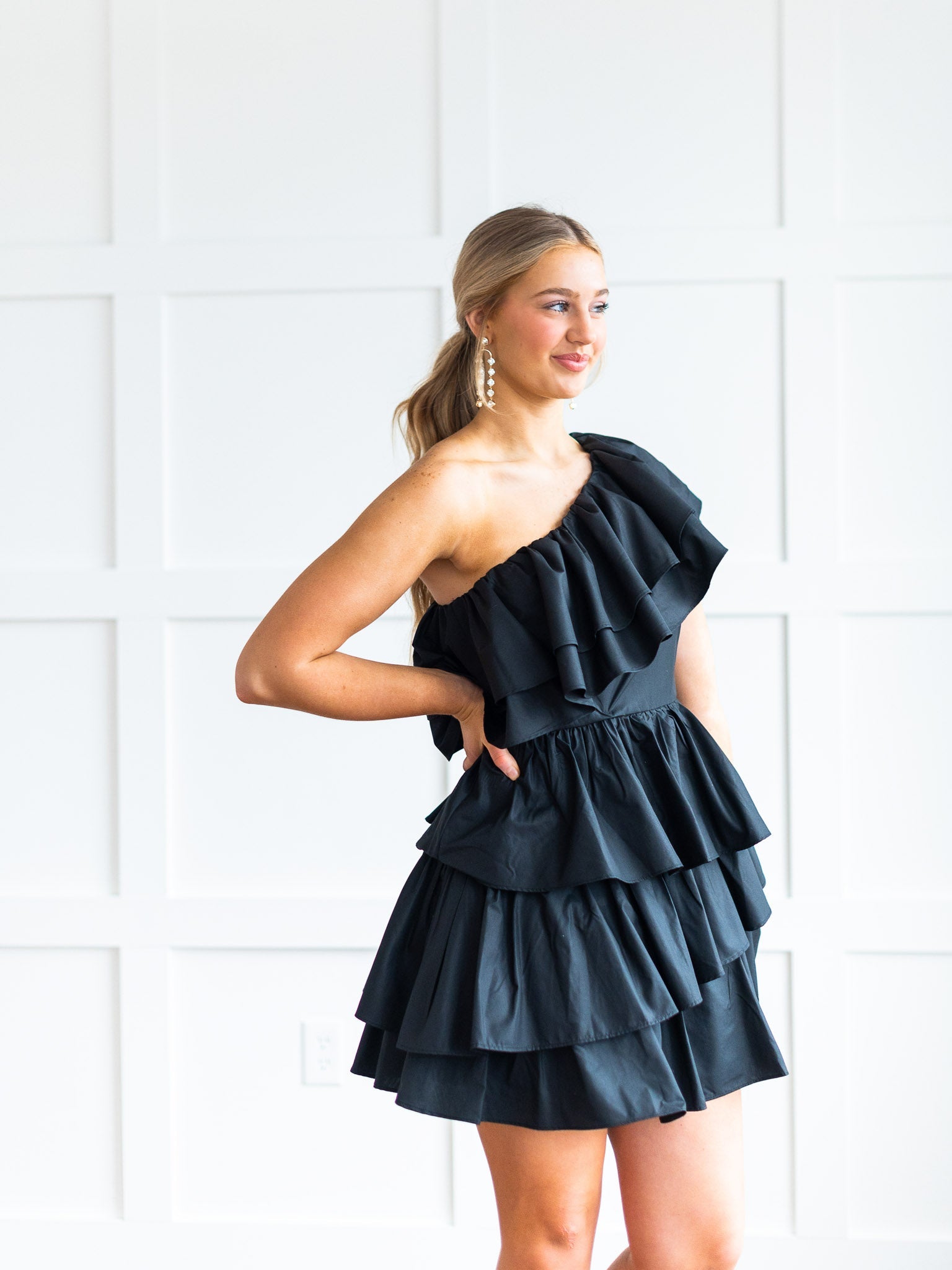 Let summer shine with the Light of Day One Shoulder Dress. Featuring oversized tiered asymmetrical ruffles and a one shoulder design, you will make a statement in style. Enjoy the sun in playful sophistication!