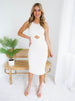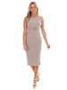 This ribbed midi dress is perfect for a night out! Its cut-out detail and bodycon fit will hug your curves for a flattering silhouette. A round neckline adds an elegant touch, making this the perfect look for any special occasion.