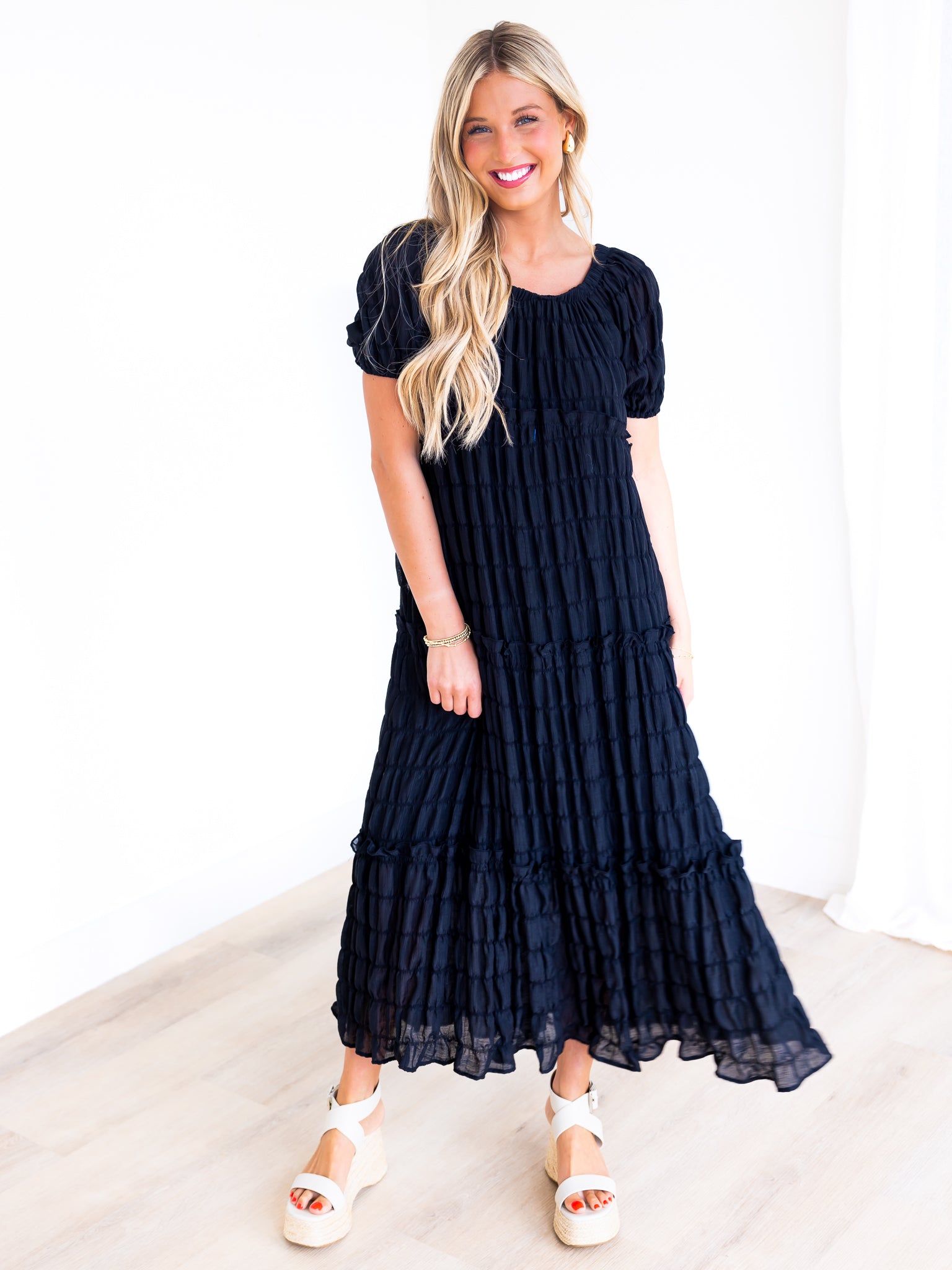 Get ready to turn heads with our Love is A Game Texture Maxi Dress! Made with textured fabric, this tiered maxi dress is not only stylish but also comfortable. The lining adds a touch of elegance to this playful dress. Perfect for any occasion, this dress is a must-have for any fashion lover.