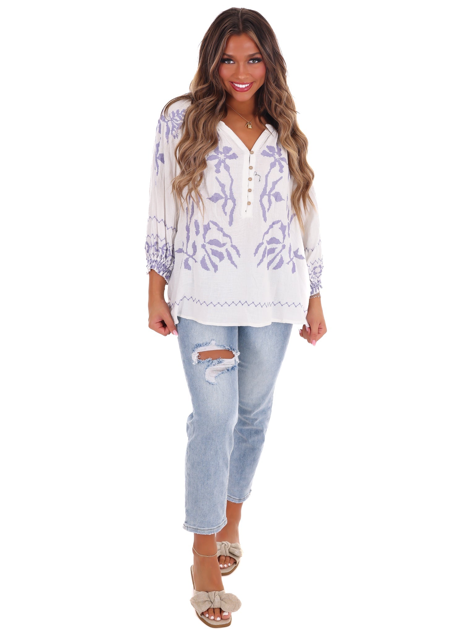 Get ready to fall in love with our Love Me Better Top! This playful and flirty v-neckline top features a unique pattern and stylish 3/4 length balloon sleeves. Make a statement and elevate your wardrobe with this must-have piece.