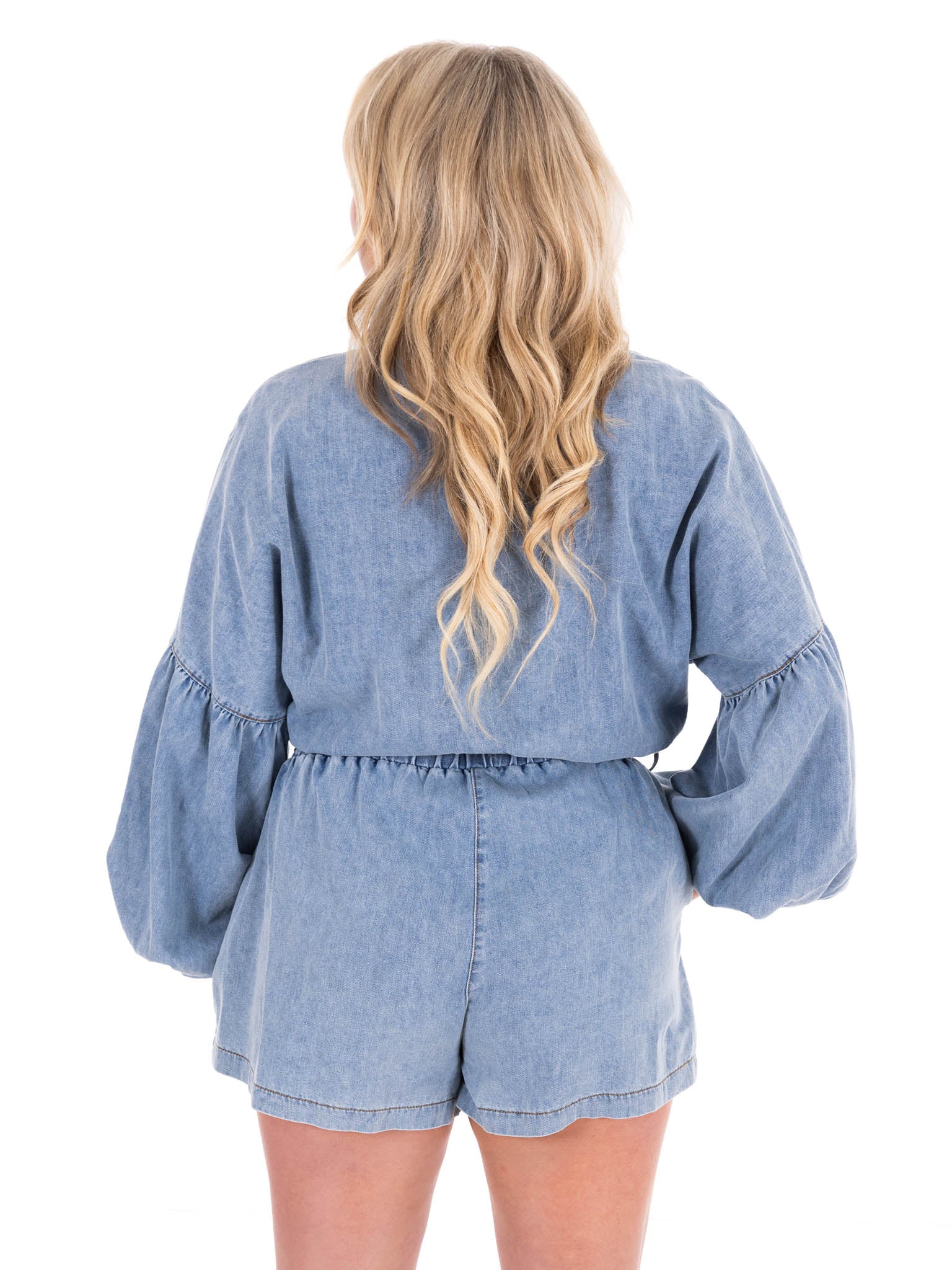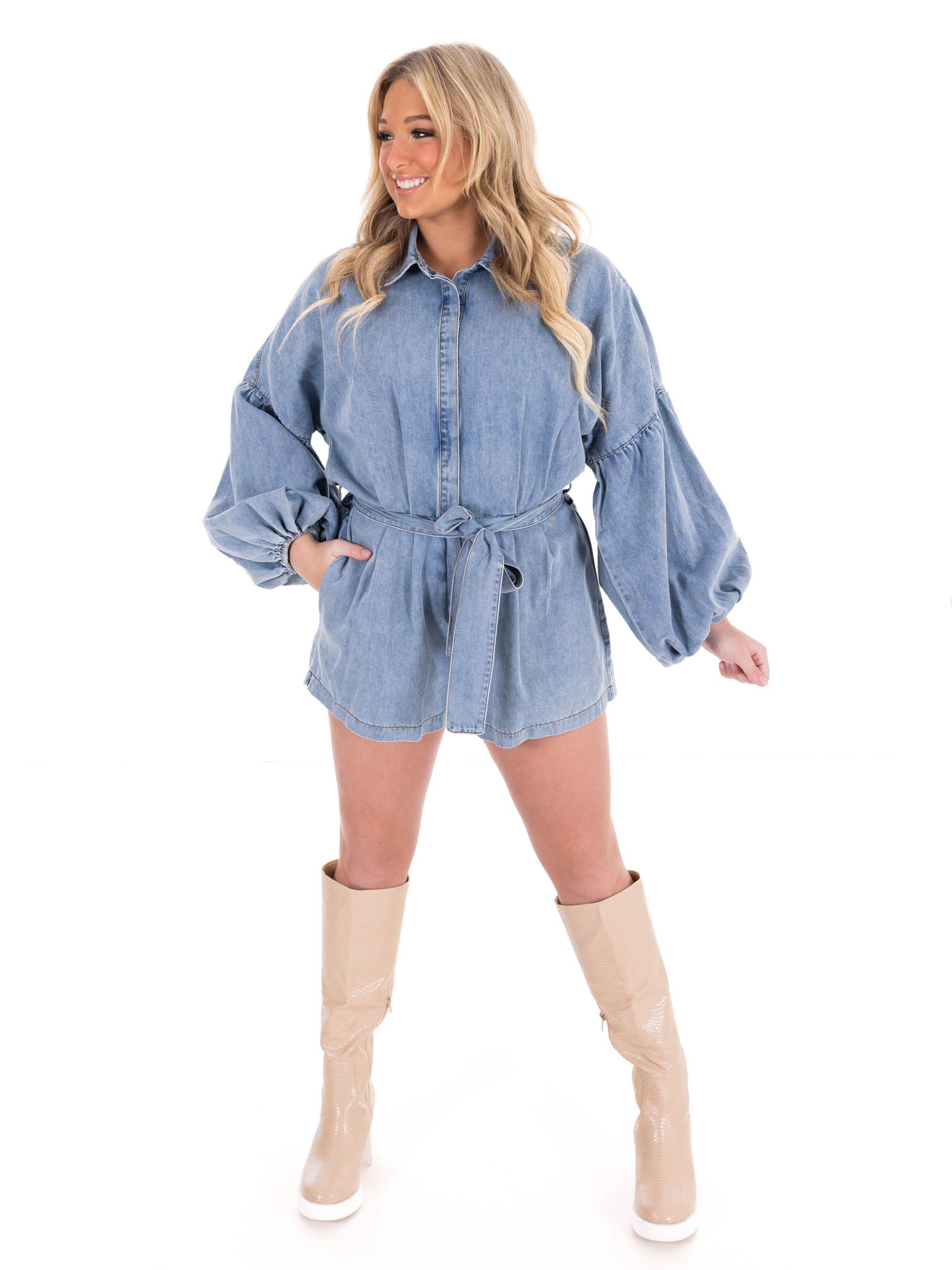 Love denim? This Mad About You Denim Romper is sure to have you gushing! With its balloon sleeves, button down front, and self tie belt, you'll be the talk of the town. Feel as cool as GQ and as cute as a button!