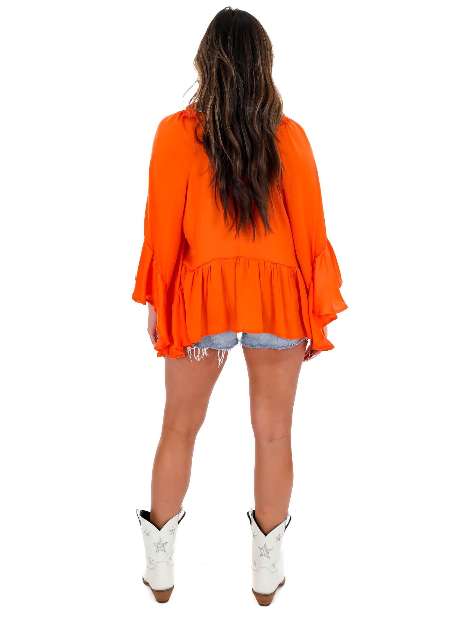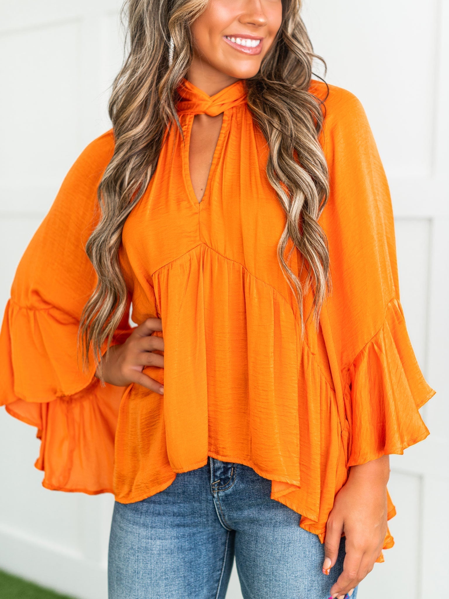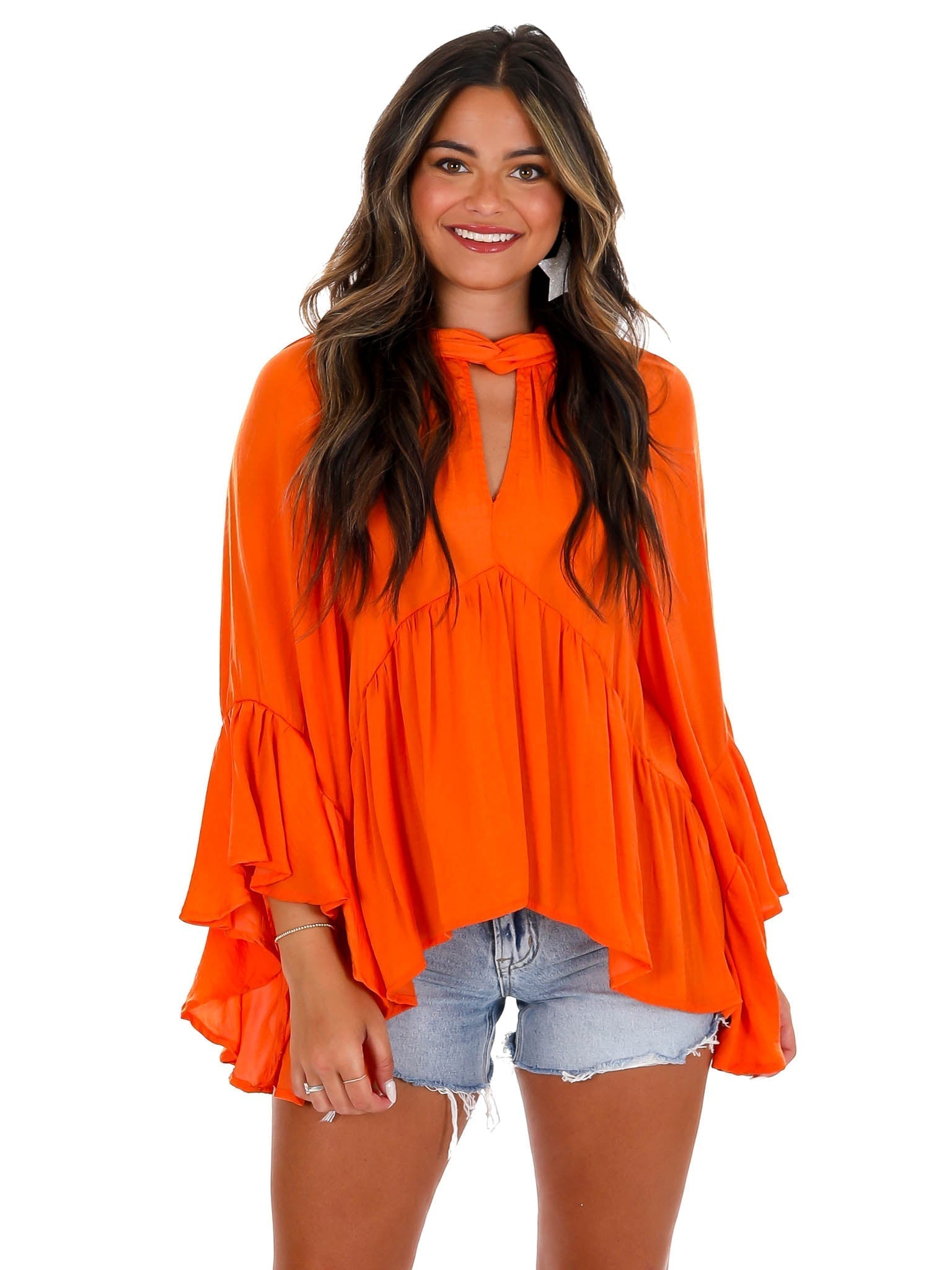 Introducing the Meet Me At the Field Top – the perfect addition to your wardrobe! With its ruffled sleeves, twisted neck, and asymmetric hem, you'll feel whimsical and fashionable while keeping it comfy.