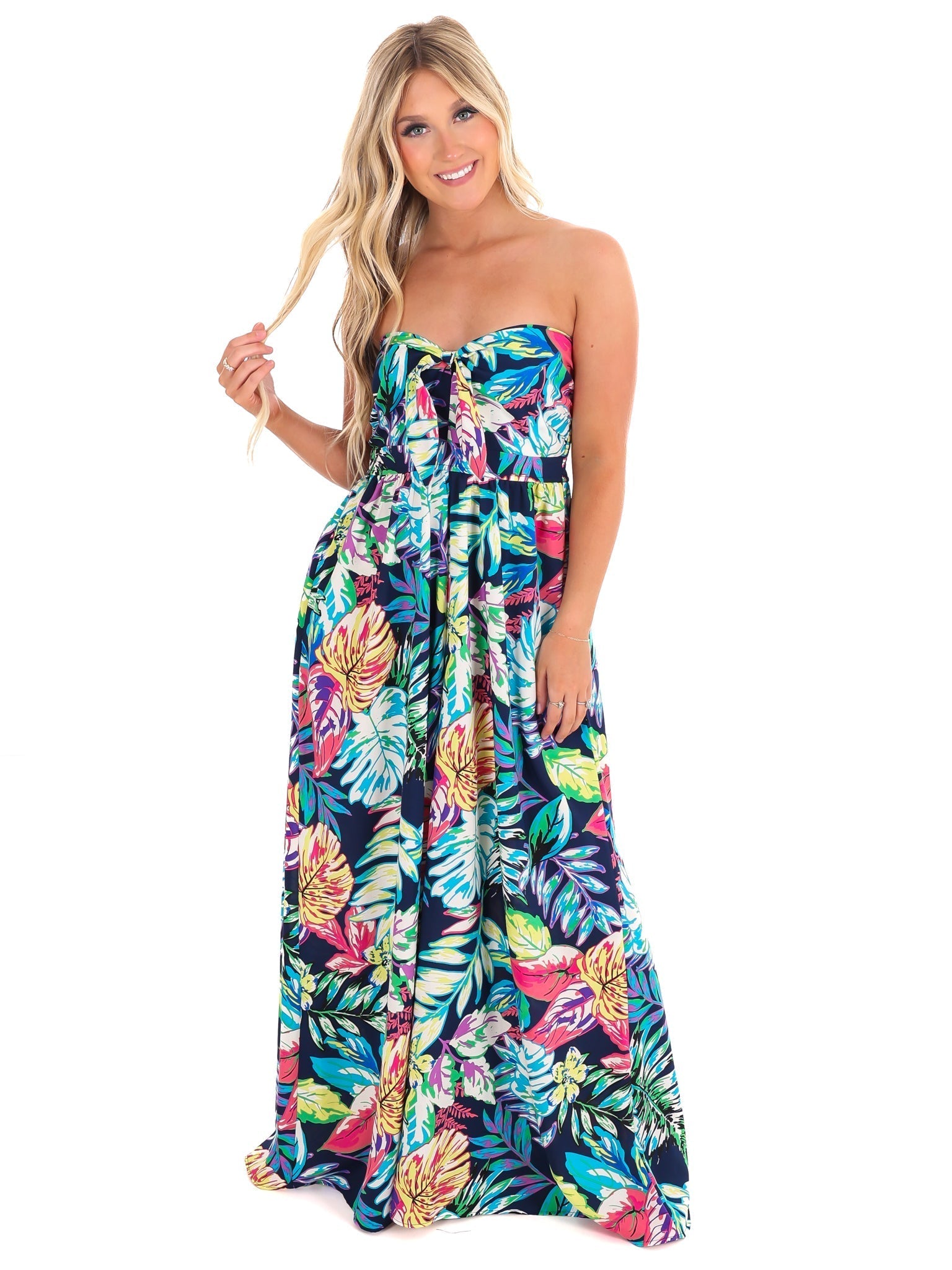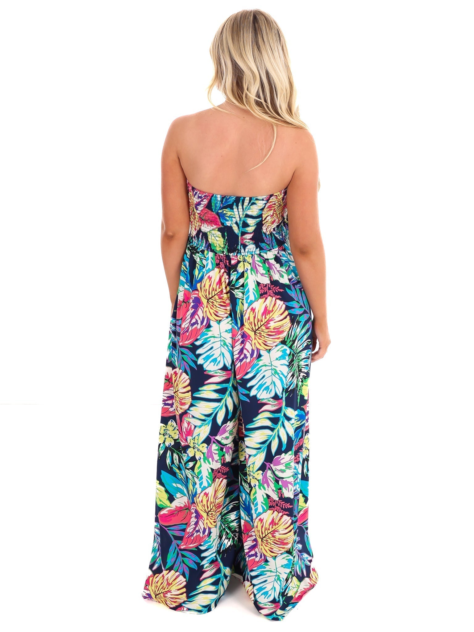 Get ready to make a statement with our Meet Me in Paradise Floral Jumpsuit! This strapless jumpsuit features a sweet front tie closure, a comfortable smocked back, and playful pockets. The wide leg style is perfect for any occasion. Paradise awaits!