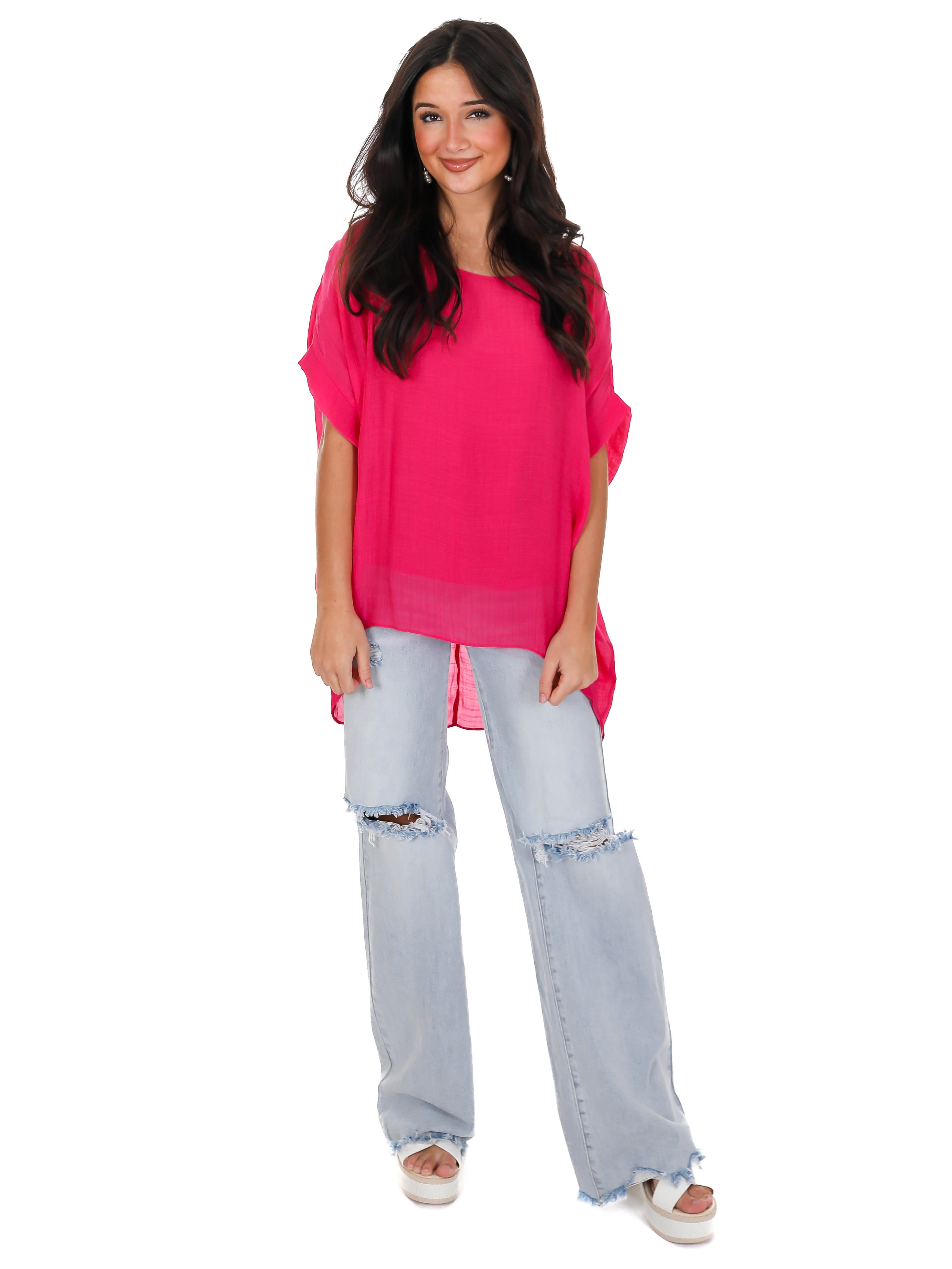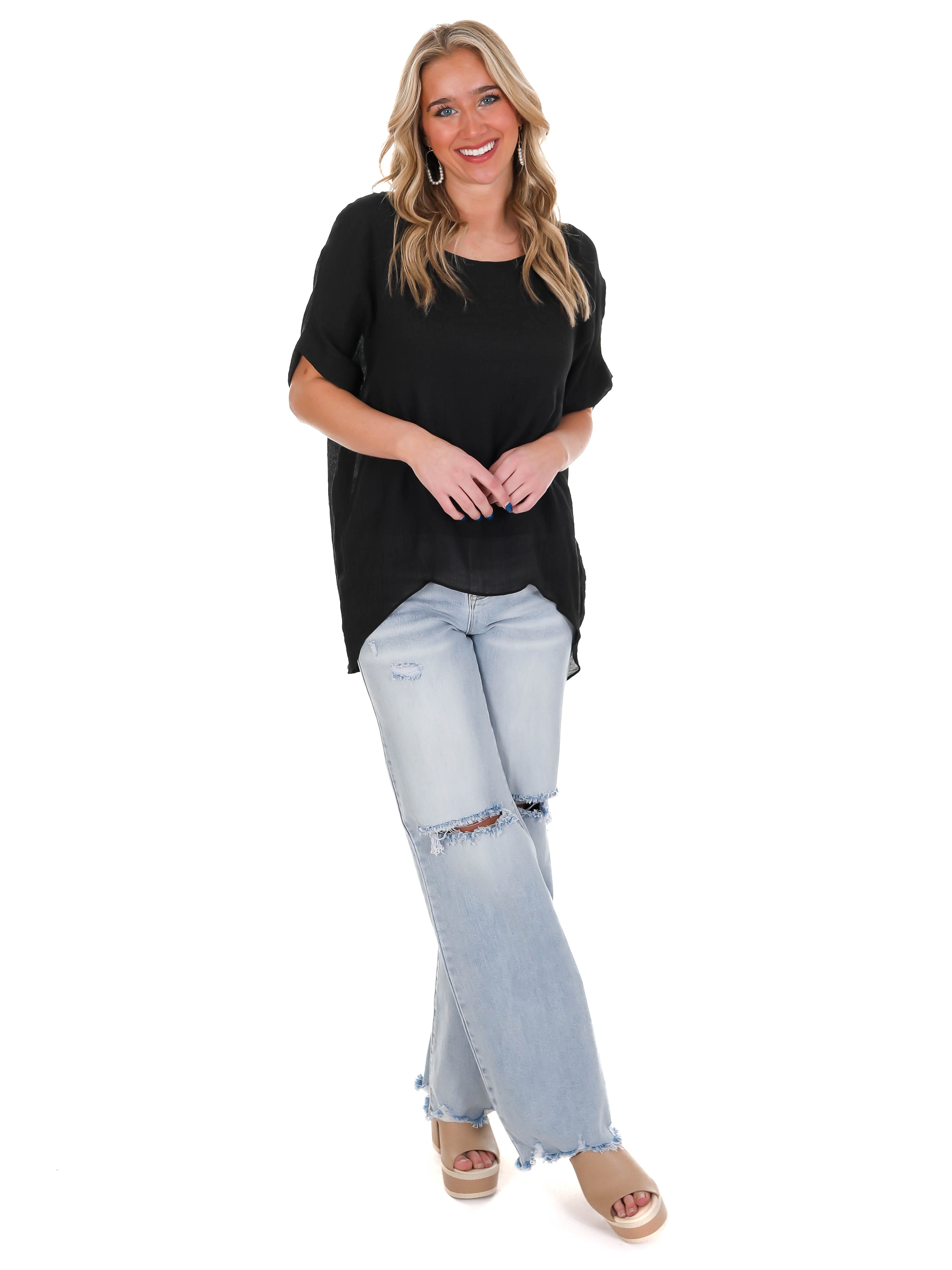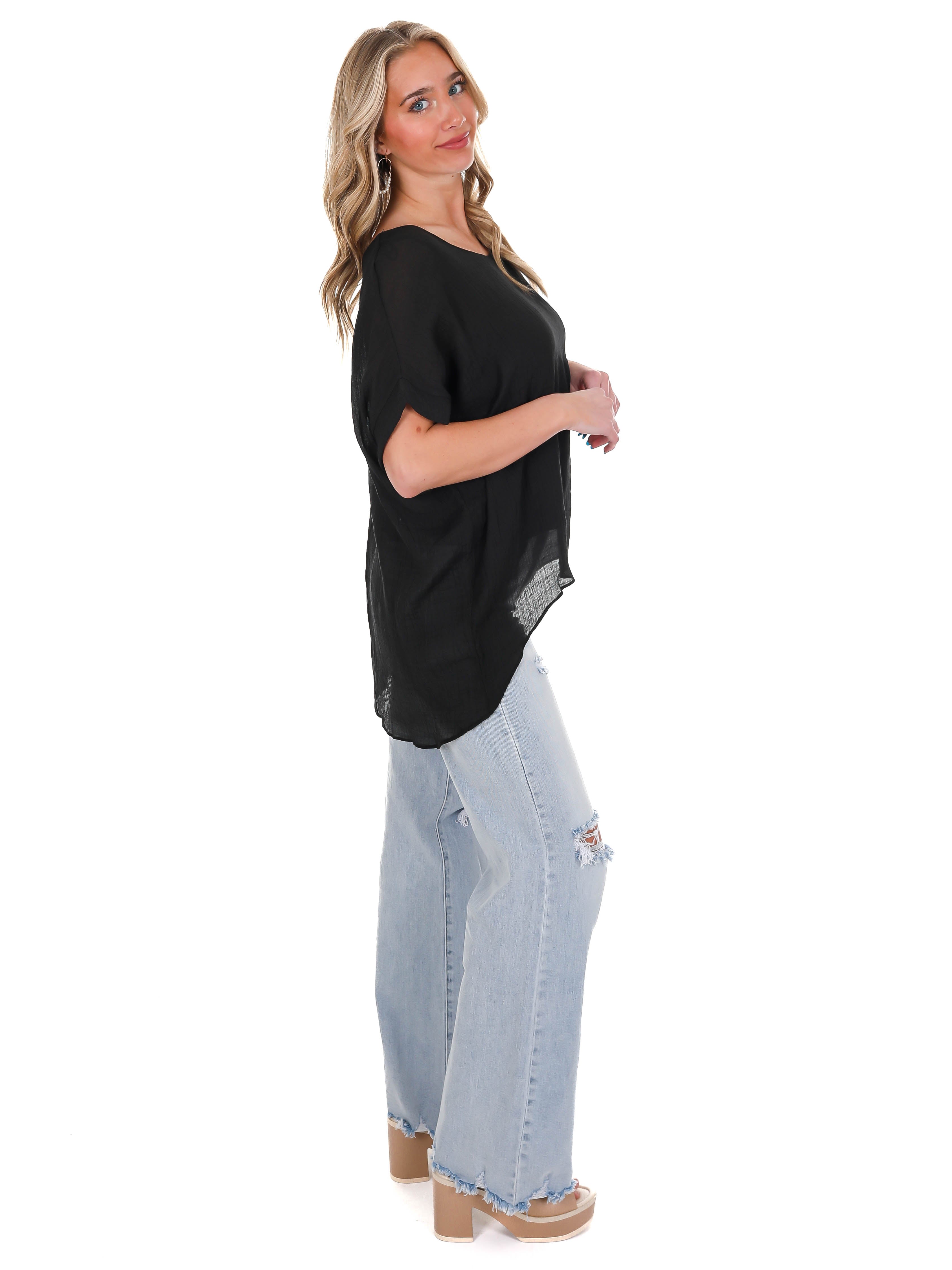 Welcome the Memory Lane Dolman Top - an easy-wearing short sleeve top with a high low hemline and boat neckline. Enjoy the relaxed fit, perfect for your summer wardrobe. Comfort and style are both taken care of!