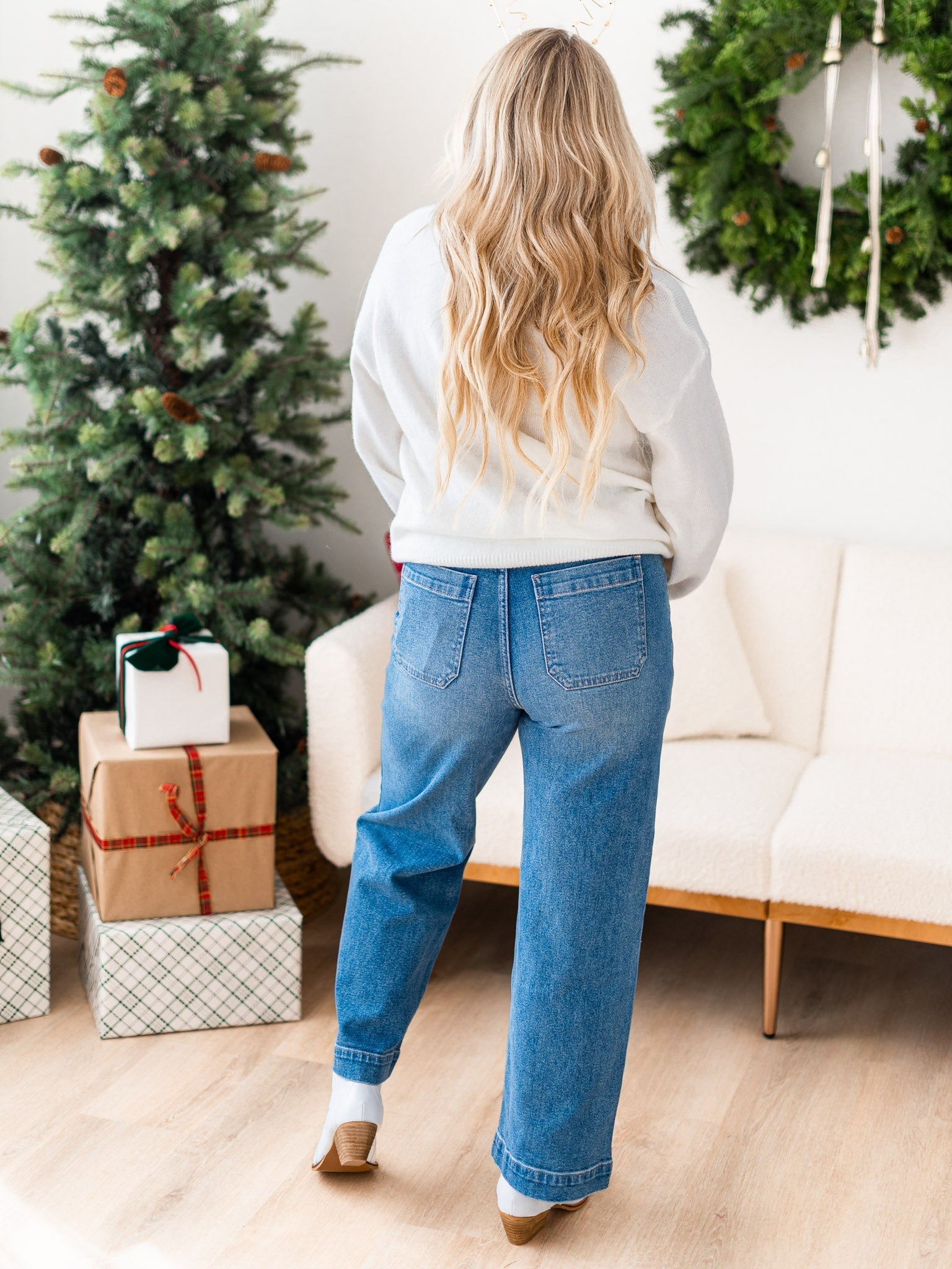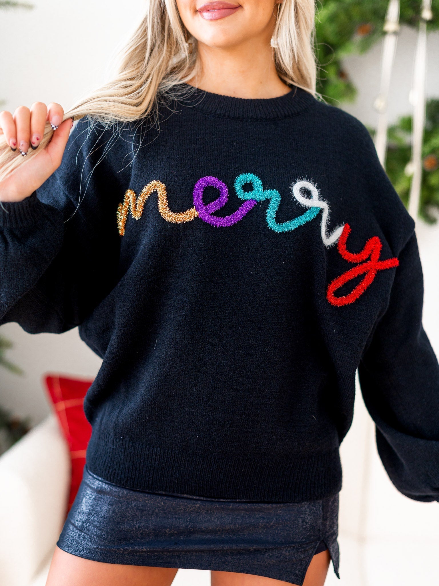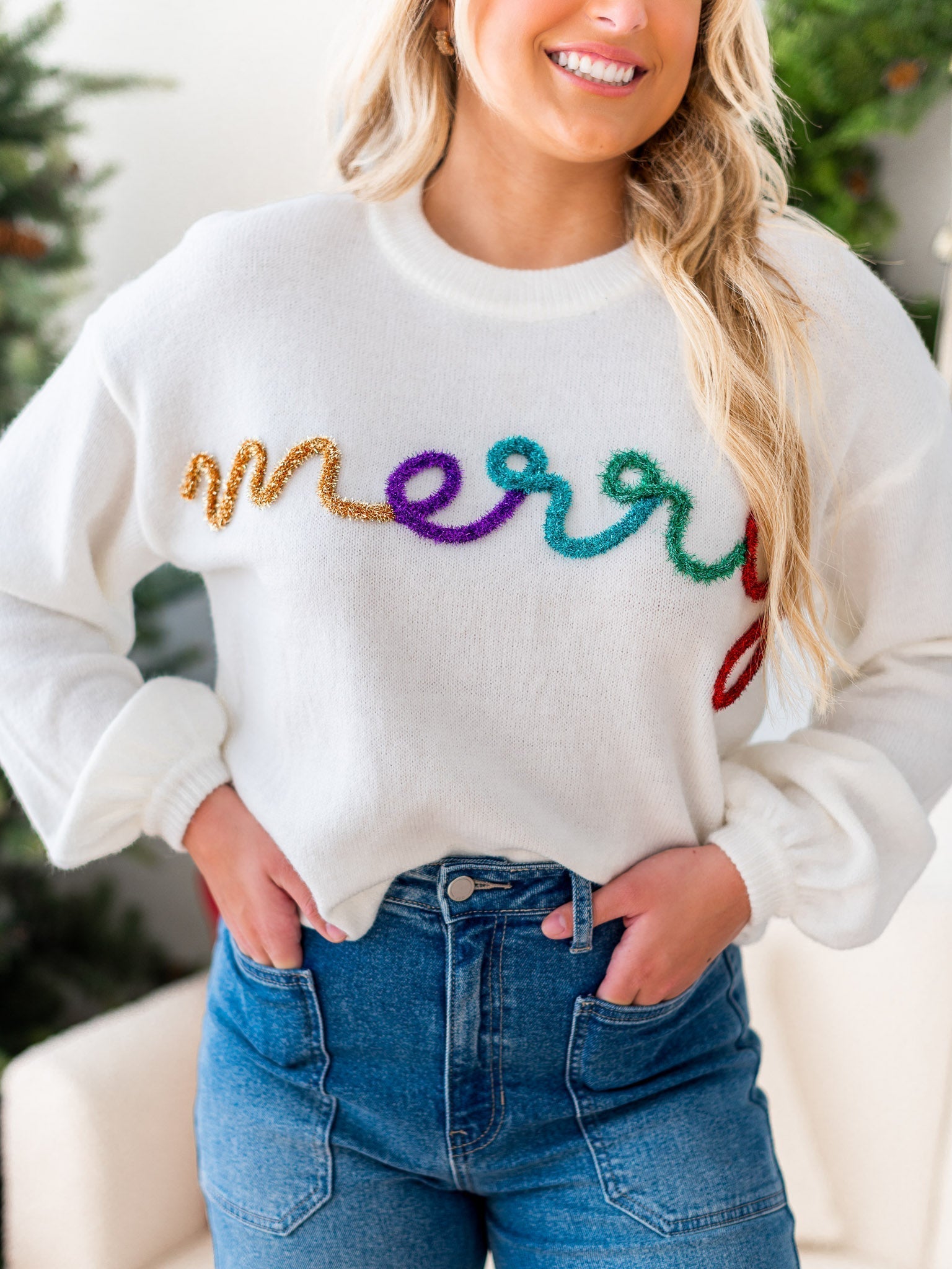 Stay merry and jolly all season long by donning this ultra-festive sweater. With its metallic tinsel-esque design, rounded neckline, and Christmas spirit, it's your sartorial ticket to a holly jolly holiday season!