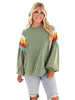 Live out your mineral dream in this playful terry knit pullover! The rounded neckline and layered color blocked sleeves are accentuated by ruching and peasant detailing, making this top a unique addition to any wardrobe. (Don't snooze on the mineral wash either, it's a dreamy bonus.)
