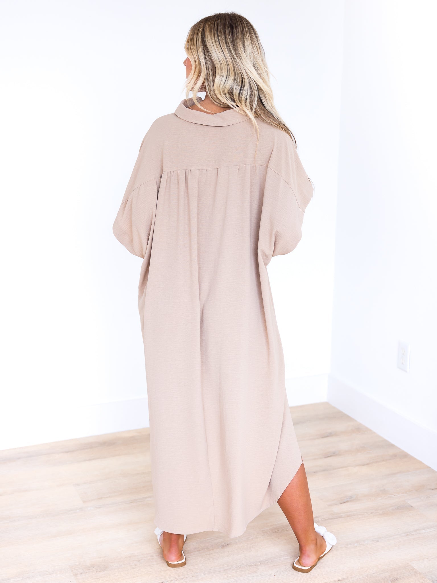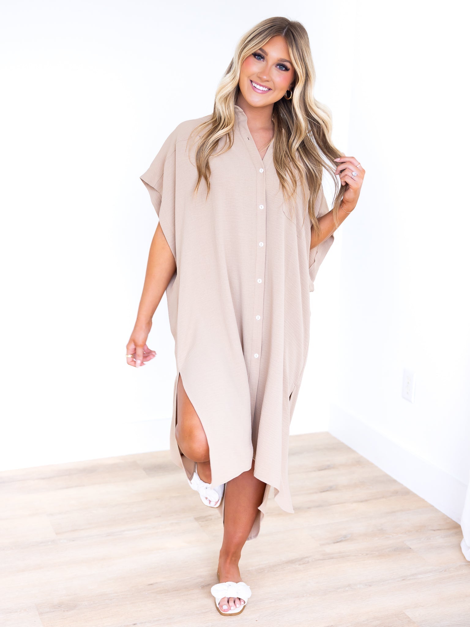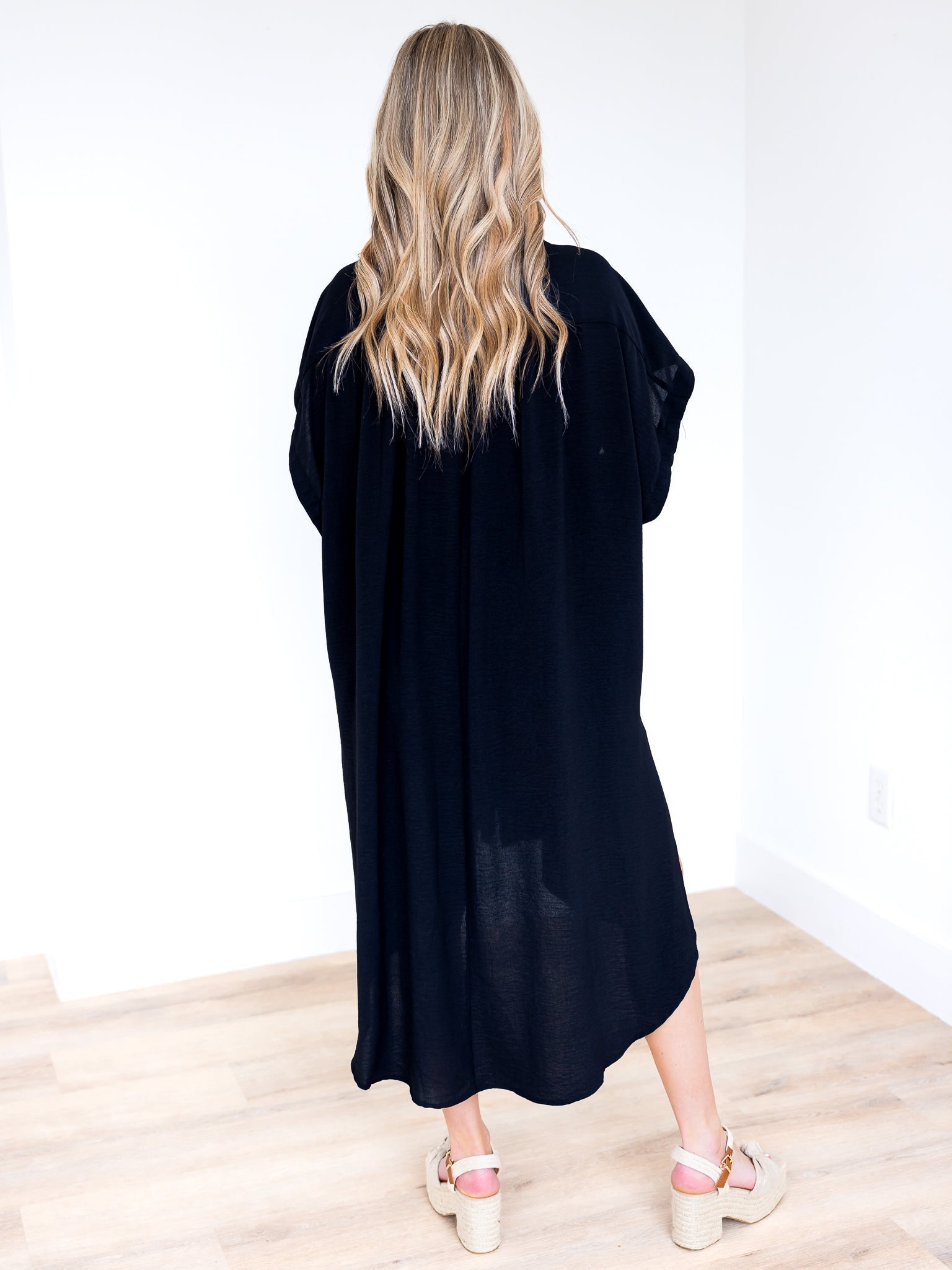 Take your style to new heights with the Moments Last Forever Midi Dress. This solid short sleeve dress features a collared neckline, button down front, and a chest pocket for added detail. Its high-low style and deep side slits add a touch of uniqueness to this versatile piece. Wear it closed or open as a duster for endless style possibilities. Time to make some fashion memories!