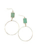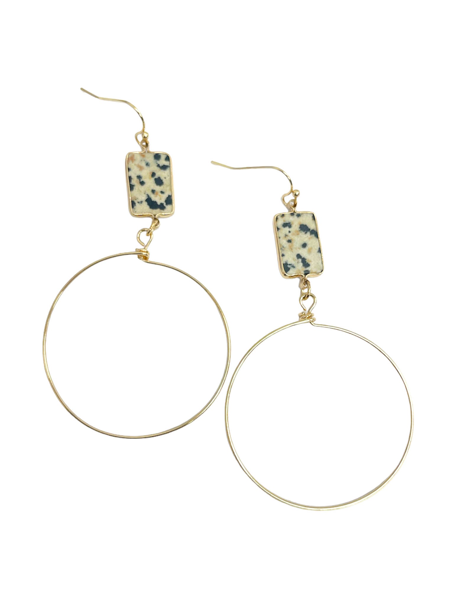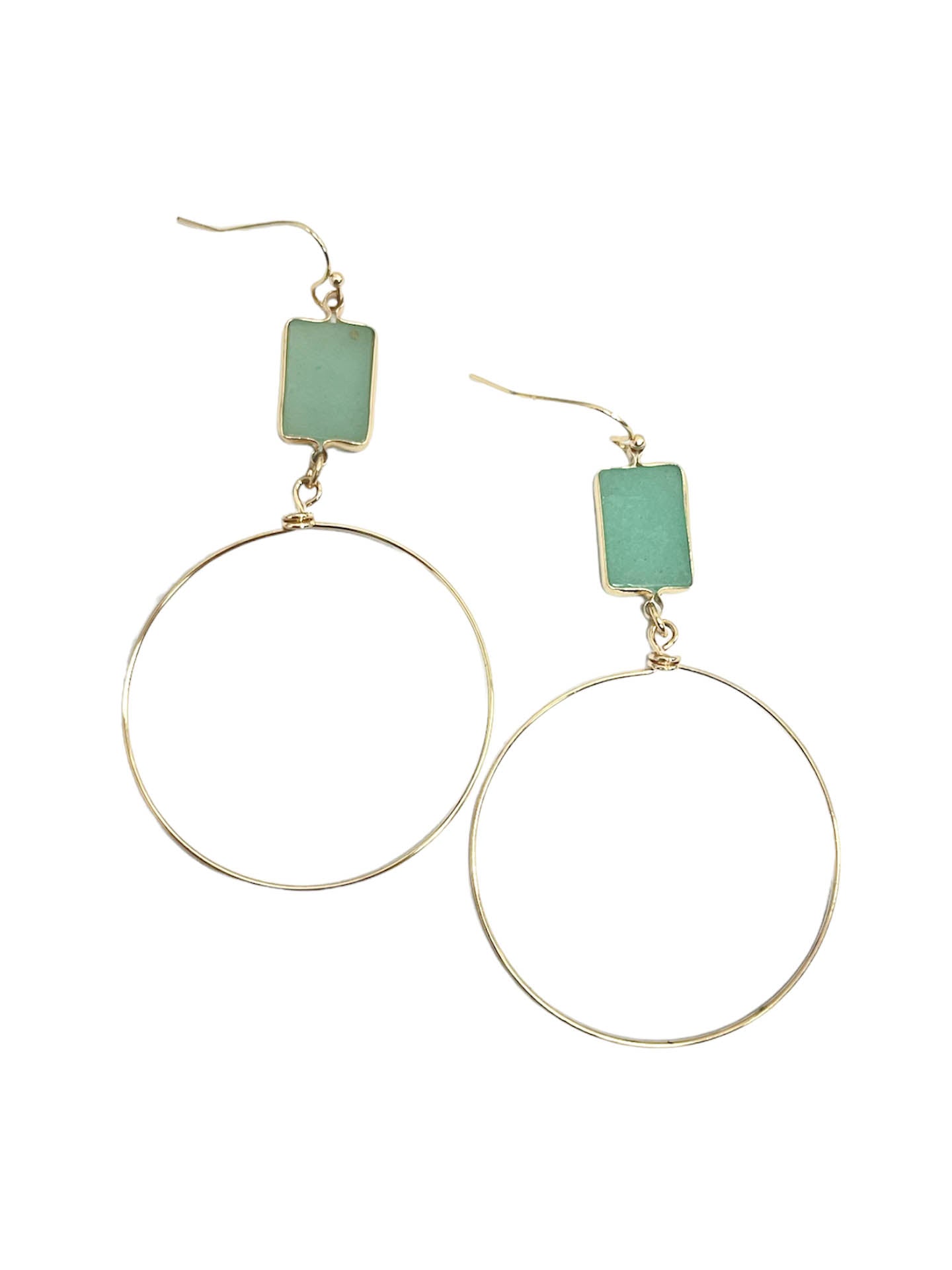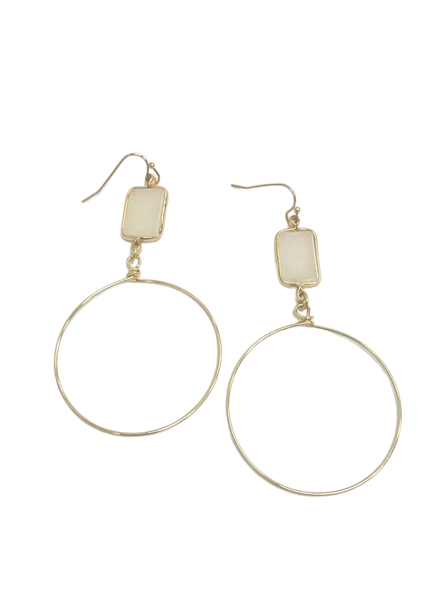 Drop earrings Natural stone rectangles Closed circle  Gold