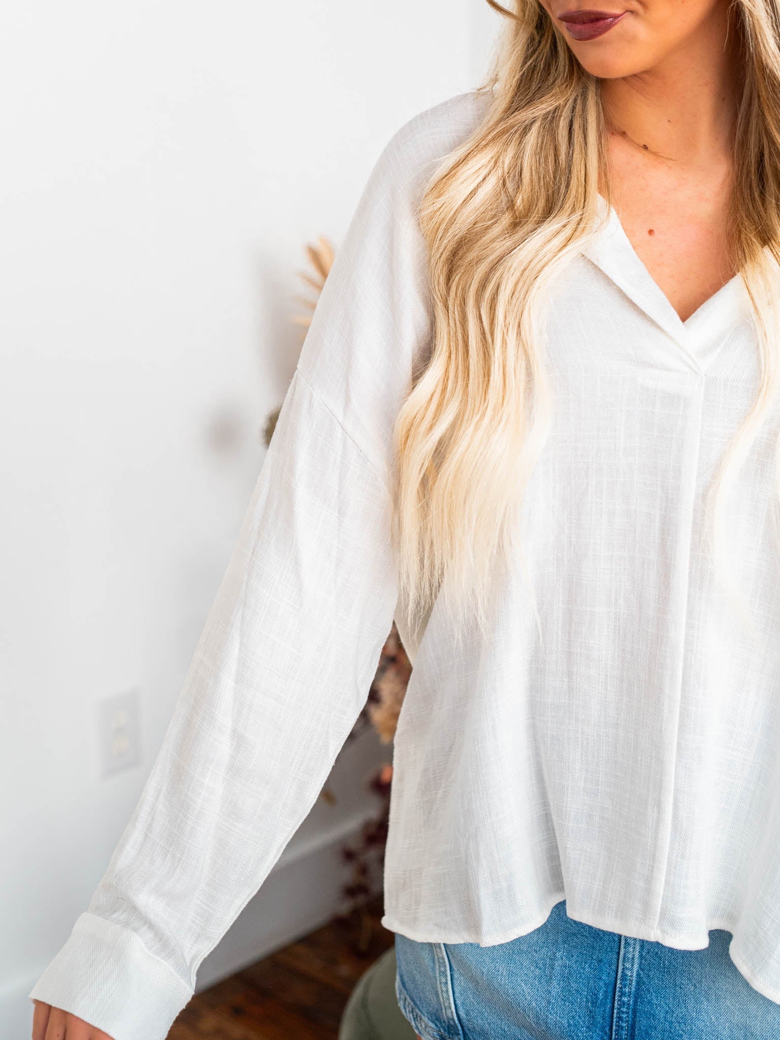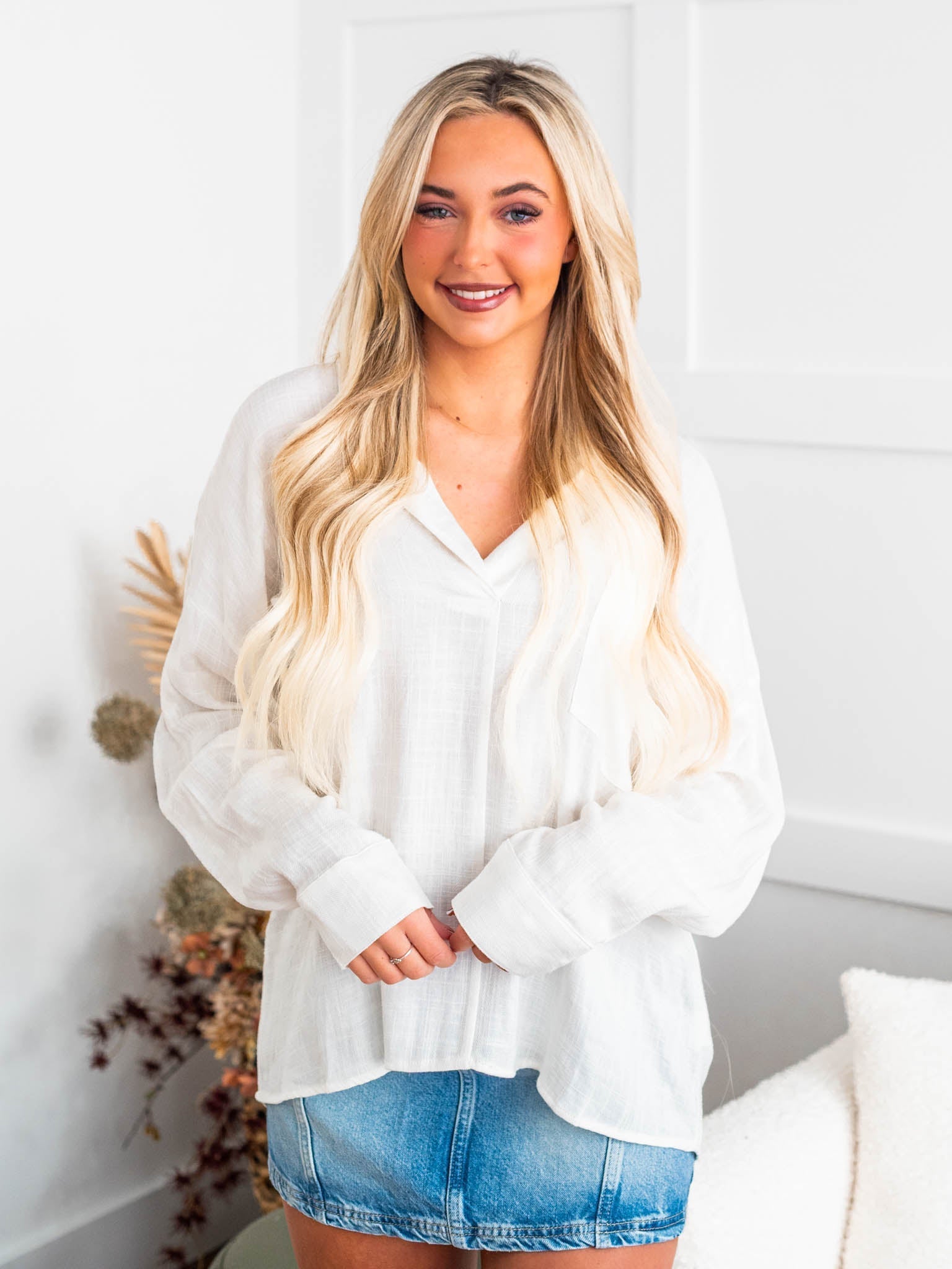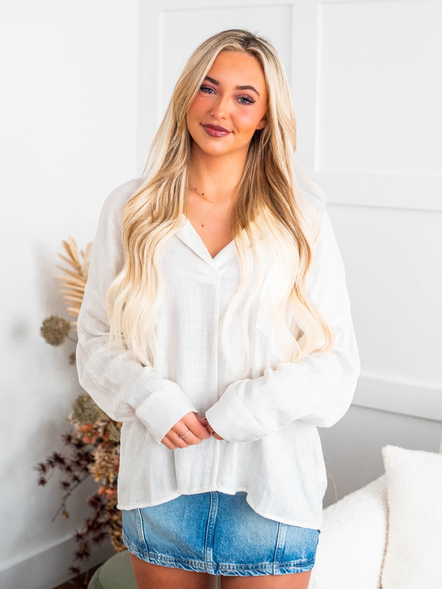Get ready to conquer the next town over in style with our Next Town Over Pocket Top! This solid long sleeve top features a collared neckline and two front chest pockets for a touch of sophistication. With buttoned cuffs and a rounded bottom hem, this top is both practical and stylish.