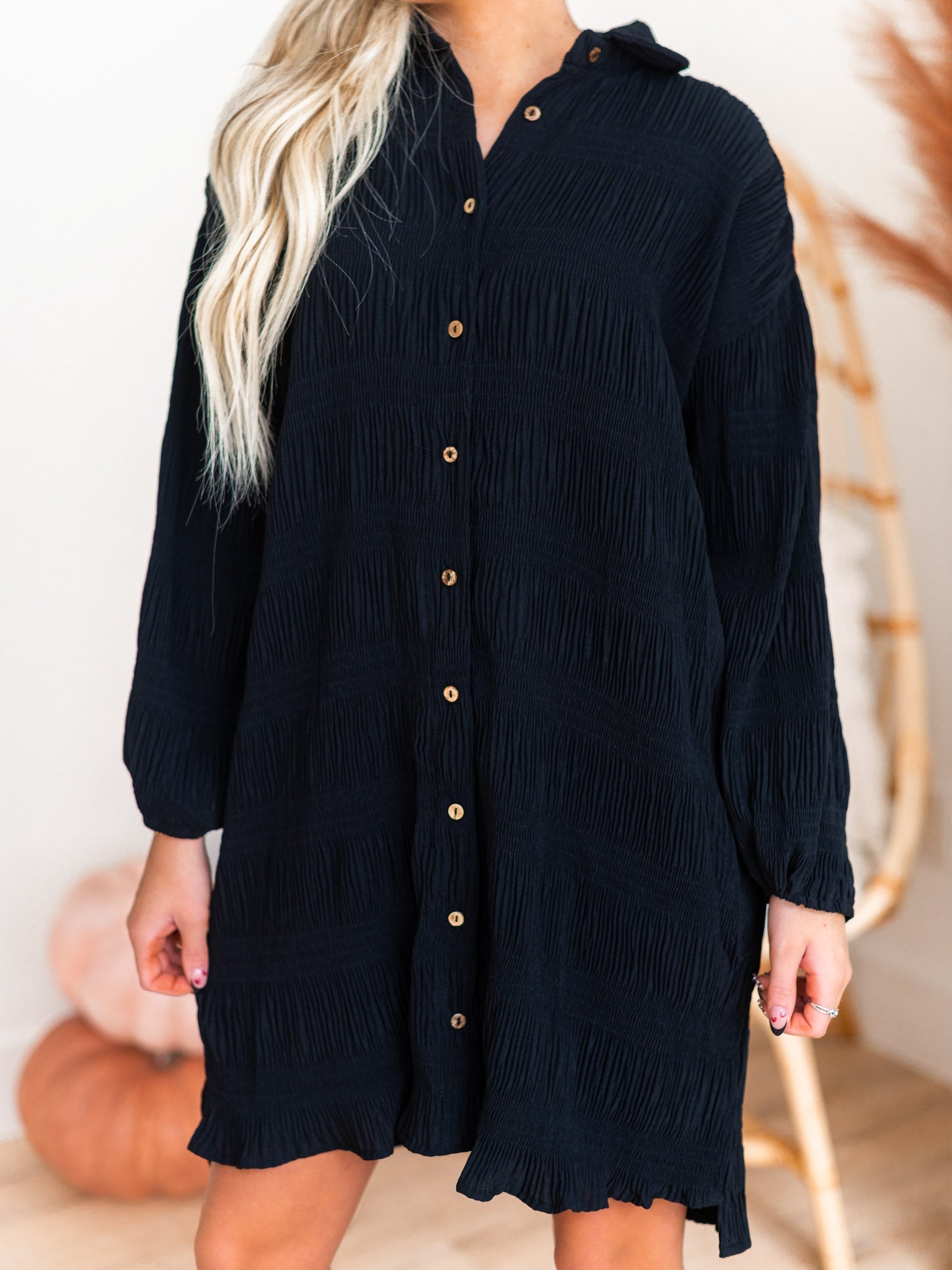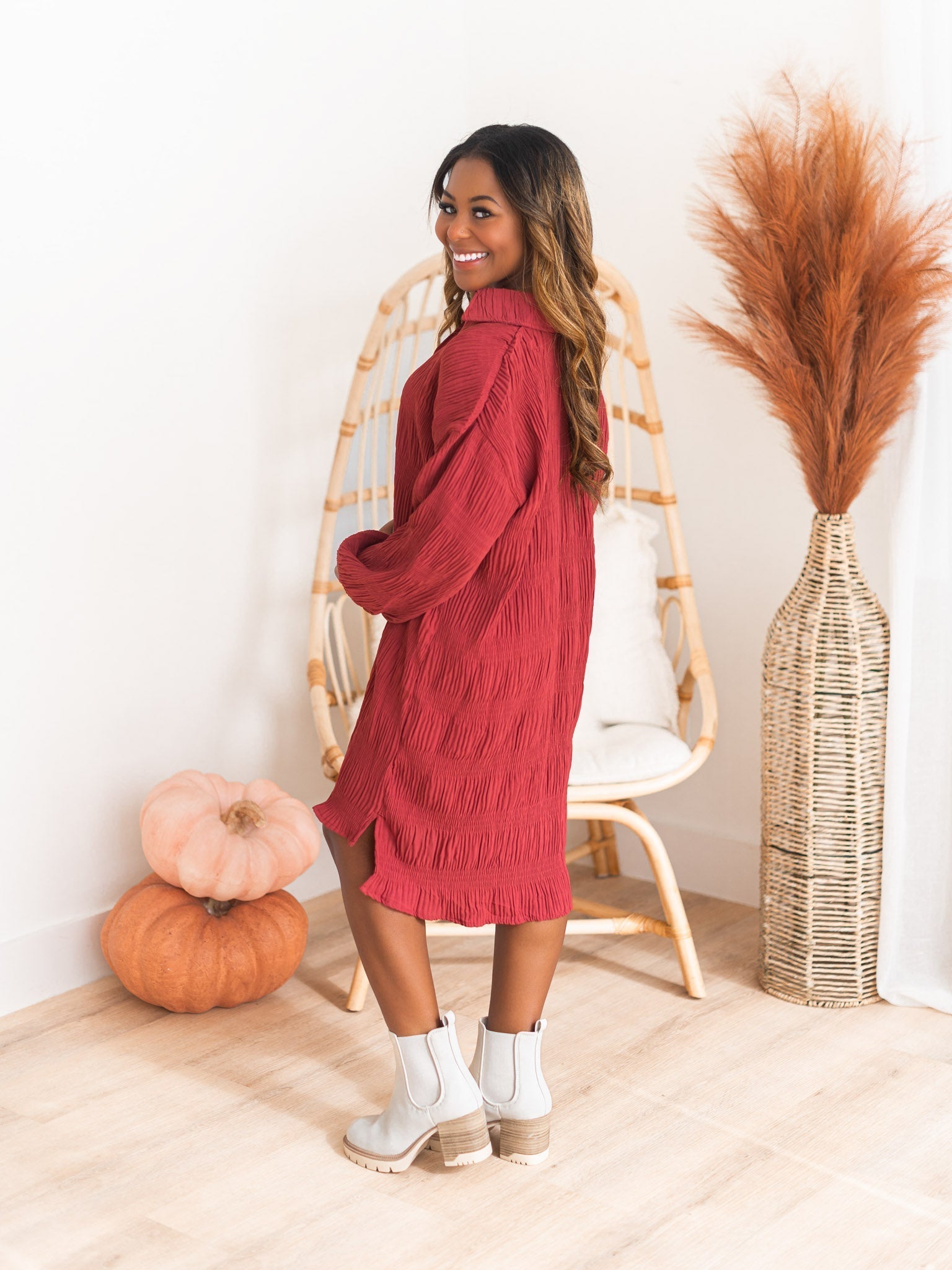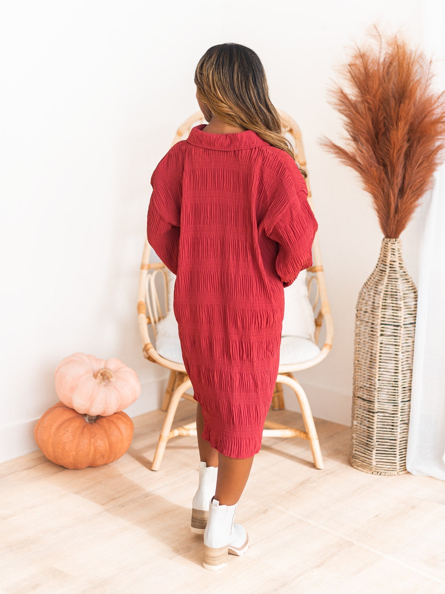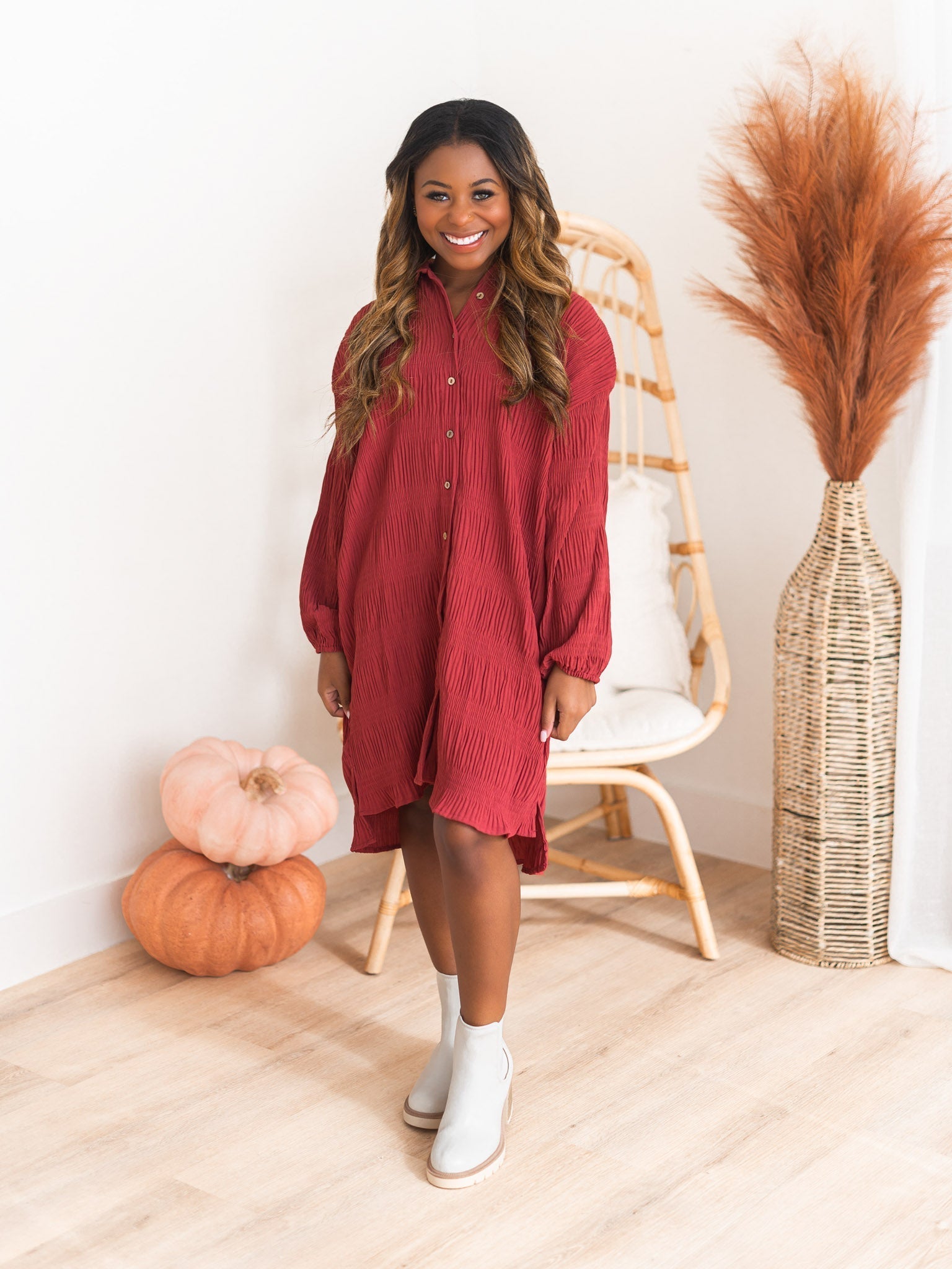 Grow your style with this No Limits Shirt Dress! This fun, button-up style is made with a comfy smocked corduroy fabric and features balloon sleeves and a high-low hemline with side slits for a unique look. Ready to take your fashion to the next level? Get yours today!