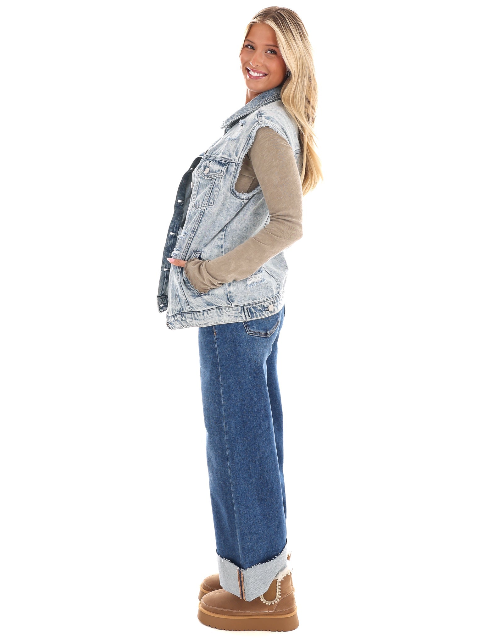 Unleash your wild side with the Outlander Oversized Denim Vest. This versatile piece features an oversized fit and a classic denim design that adds a touch of rebellious flair to any outfit. Perfect for layering or as a statement piece, this vest will have you standing out from the crowd.
