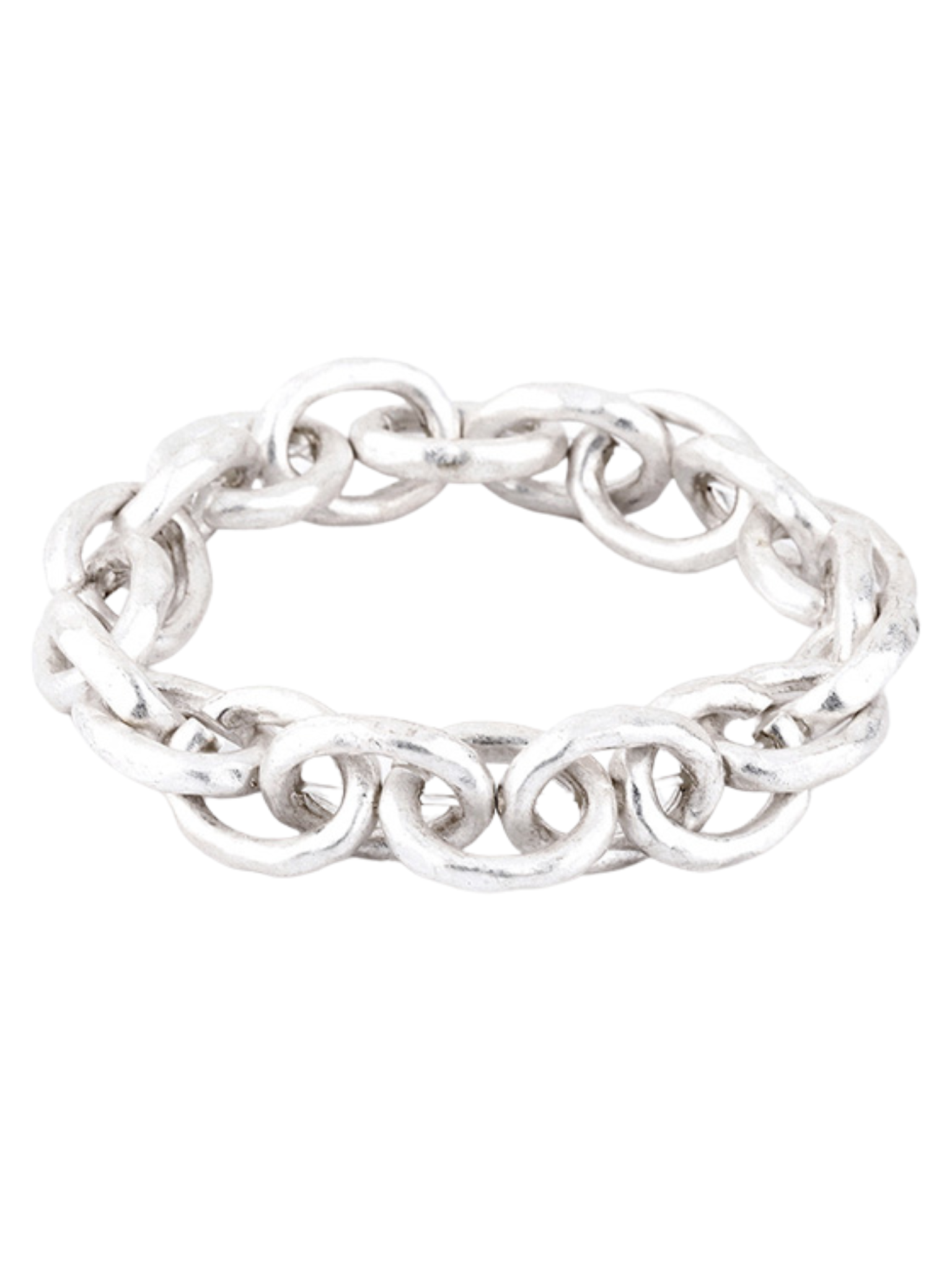 This pure elastic link bracelet with a hammered texture is your new go-to accessory for effortless style. The stretchy design makes it easy to slip on and off, while the texture adds a unique touch. Perfect for a laid-back, yet polished look.