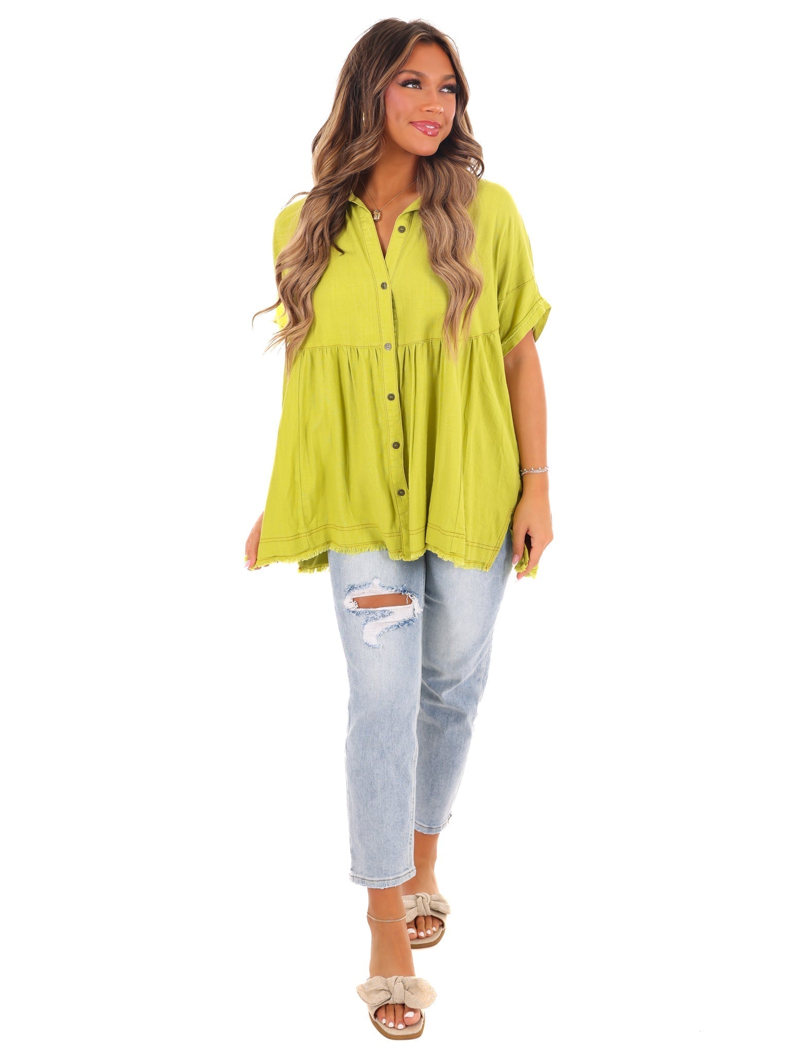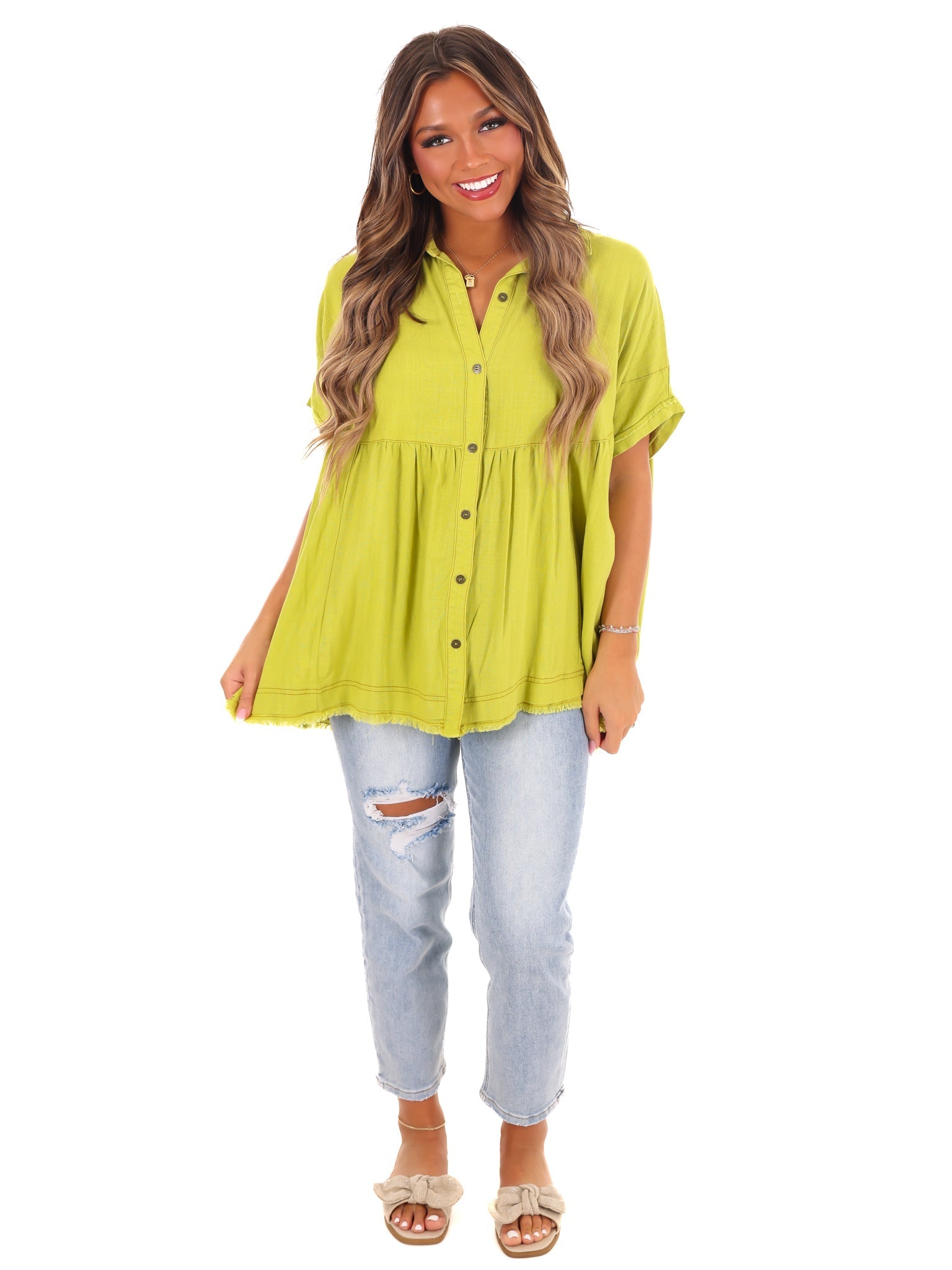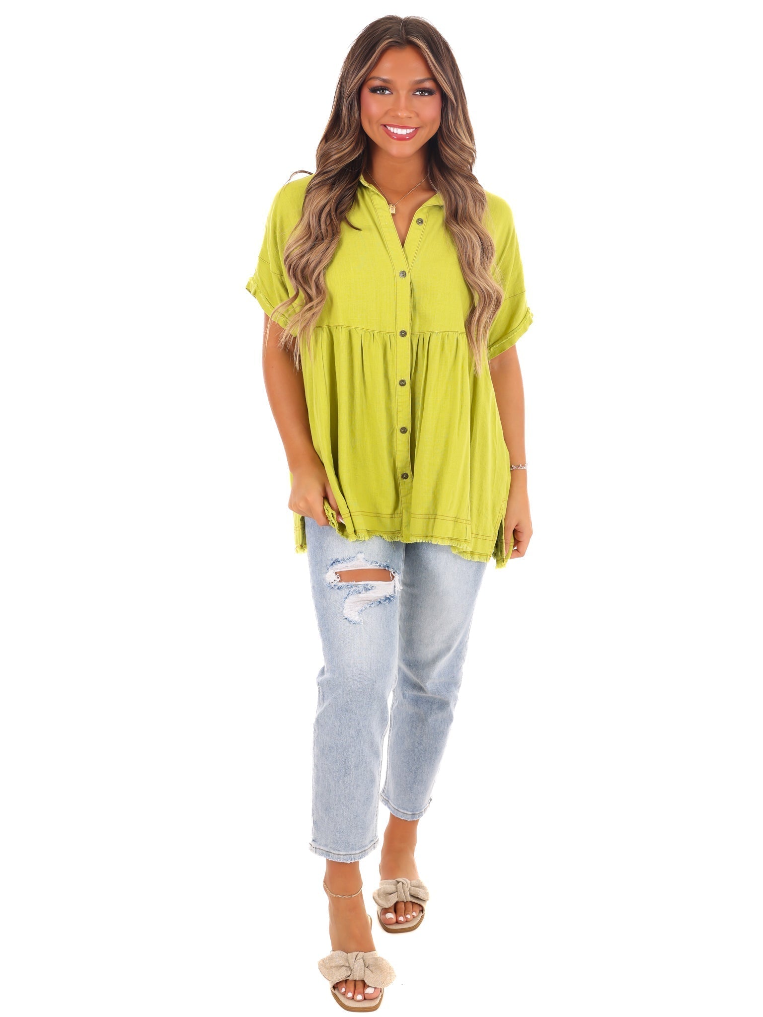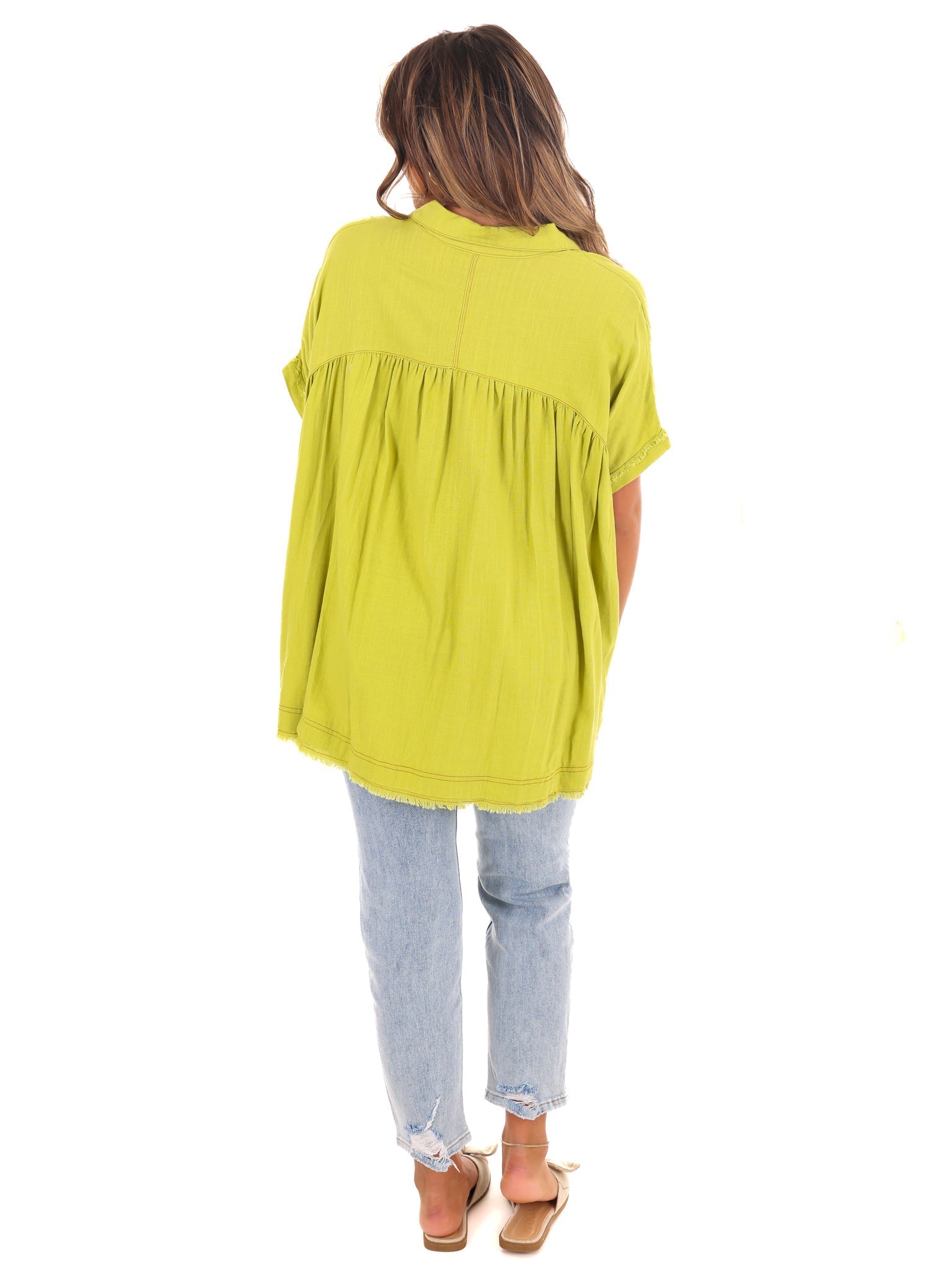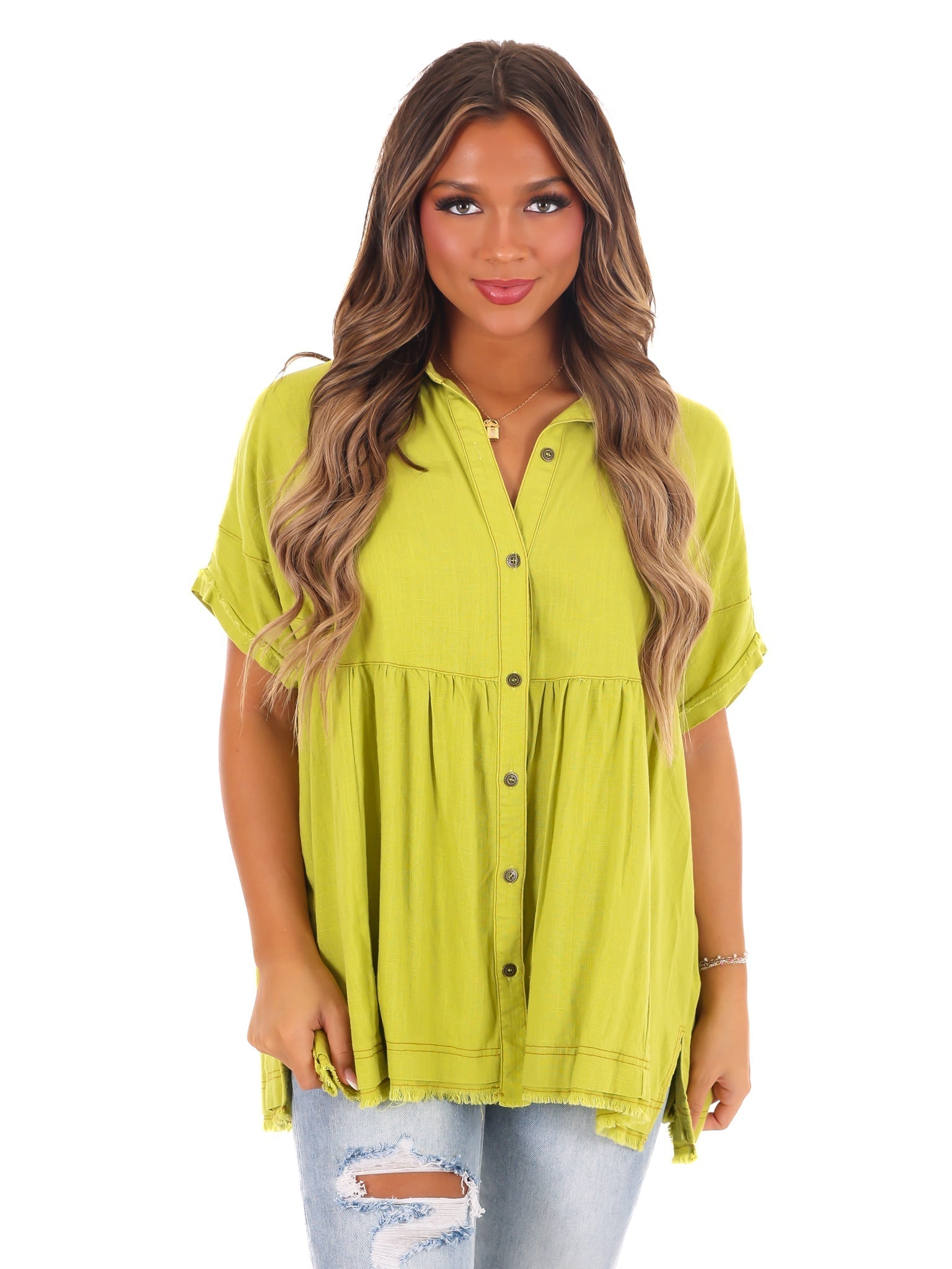 Fall in love with this Pure Love Linen Top. Featuring a collared button-up design, tiered details, and a playful side slit, it's the perfect mix of chic and casual. Plus, the frayed hem adds a touch of edge. Made with linen for ultimate comfort. (You'll want to wear it every day!)