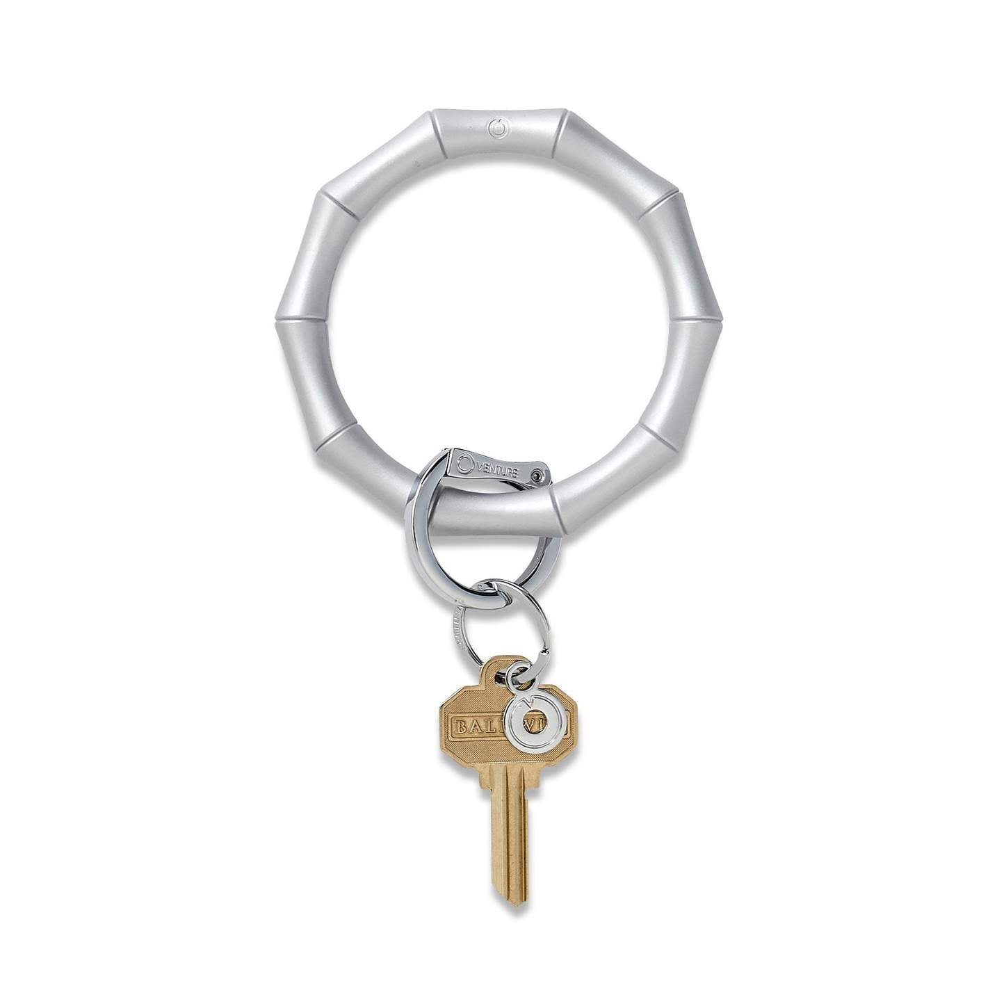 For the first time ever, the Silicone Big O® Key Ring has been reimagined in a glam new shape - Hollywood Regency-inspired bamboo! The Original Big O® Key Ring is a one-size-fits-all bracelet key ring that can be worn on your forearm or above your elbow for hands-free ease. The patented, signature locking clasp clicks open and closed so you can contain your house keys, car keys, card case and more in one central, secure location. Whether you’re trying to get the kids to school, running late to class, walking the dog, or a boss babe with a million things on her plate, the Big O® Key Ring was designed to keep your essentials (and sanity) in check at all times.
