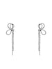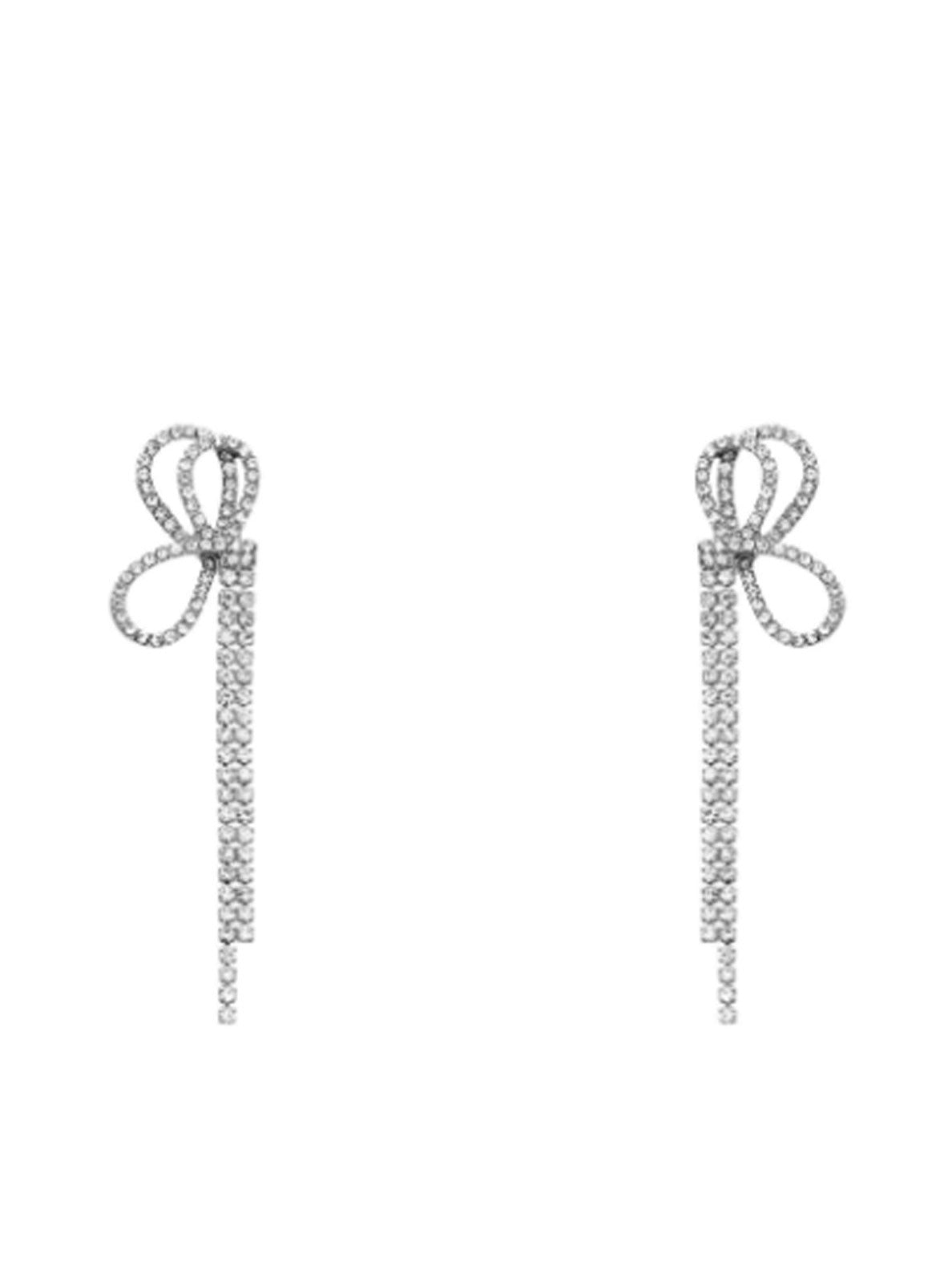 Add a touch of elegance with these stunning Ribbon Pave Stone Drop Earrings. These earrings feature a delicate ribbon design adorned with sparkling stones, giving any outfit a glamorous touch. Perfect for a night out or special occasion.