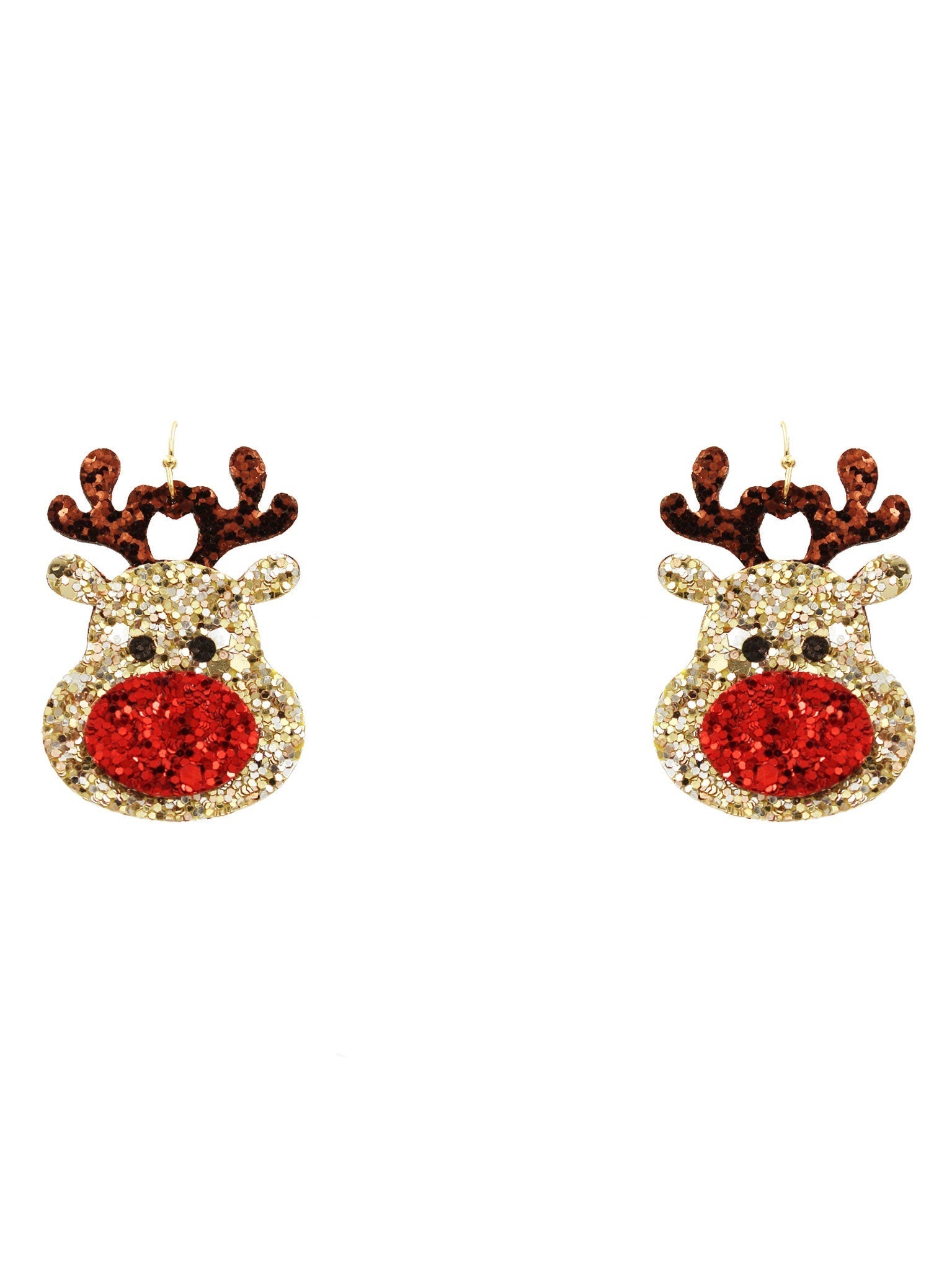 Rudolph glitter earrings Dangle Gold hardware Size: 2"