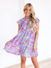 Get lost in the mesmerizing abstract print of our Safe Space dress! The smocked neck and flutter sleeves add a touch of whimsy, while the chiffon material and lining ensure a comfortable and flattering fit. Perfect for a playful and carefree look.
