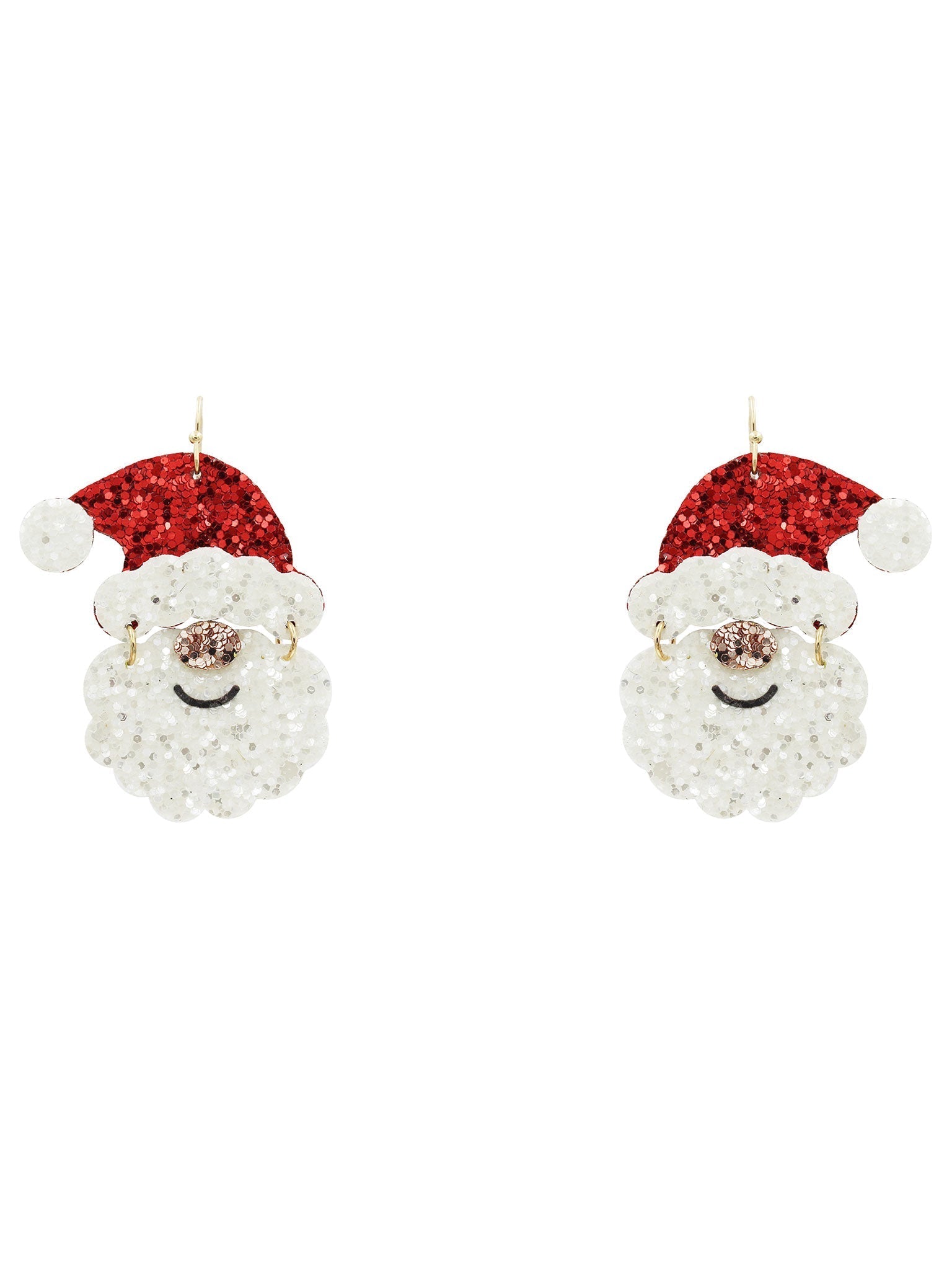 Santa glitter earrings Dangle Gold hardware Size: 2.25"