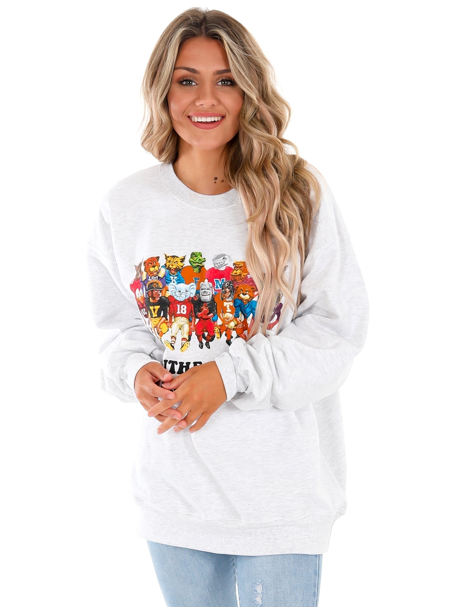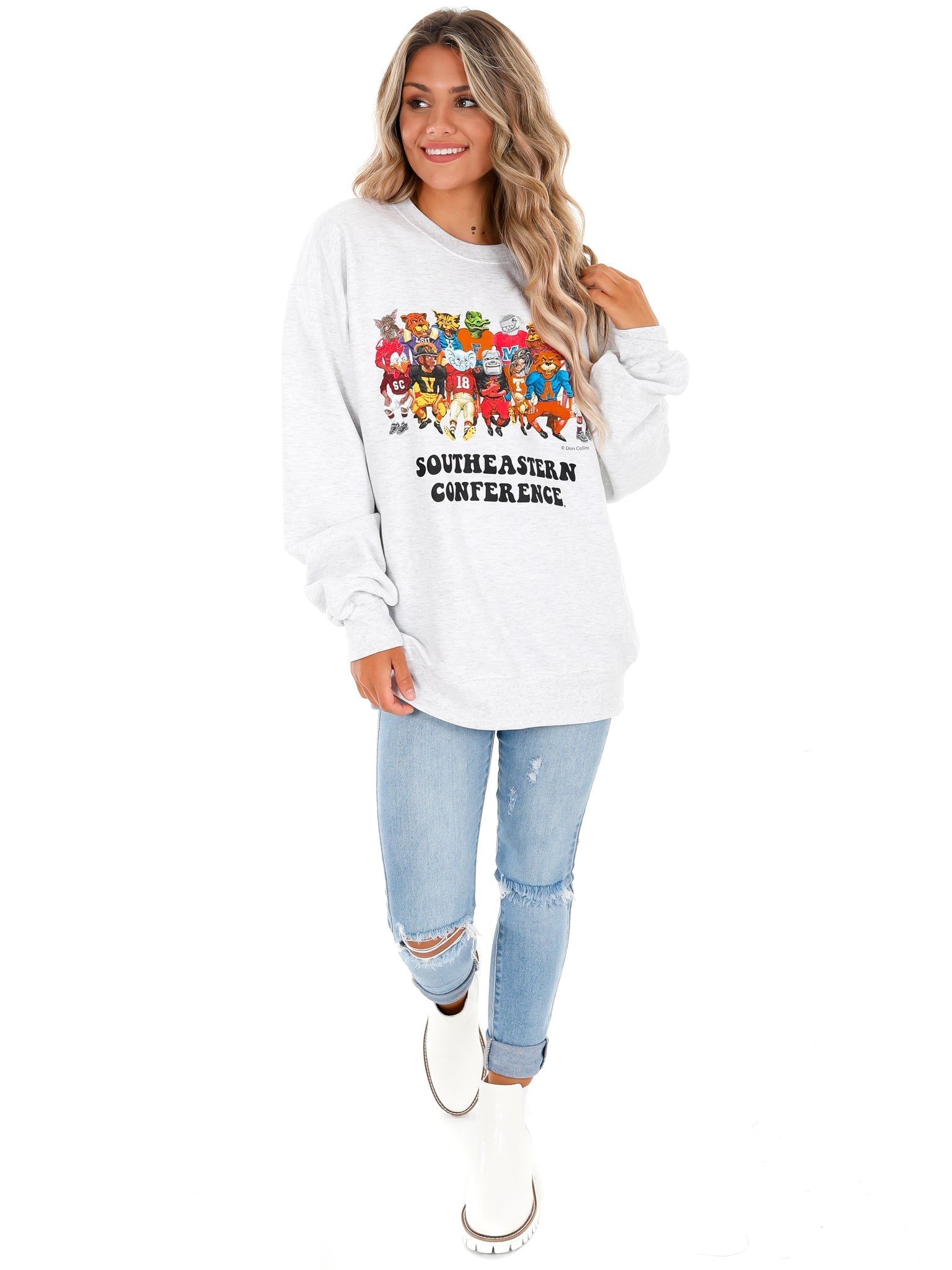 We are in love with this sweatshirt! Featuring a graphic of all the mascots in the SEC, it is the perfect top to wear long past the last game! We have a feeling these are gonna go fast, so grab yours today!