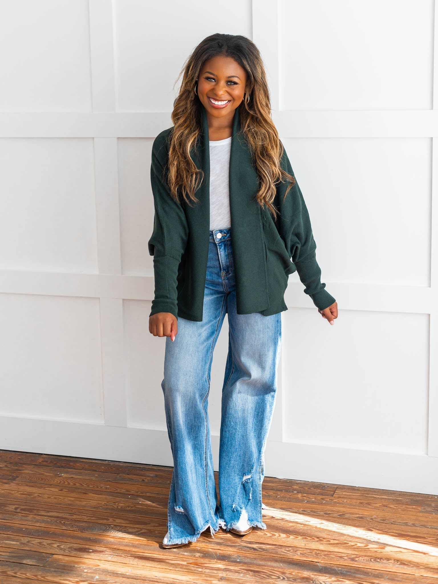 Keep cozy and look cute with this Simple Wishes Cardigan! Perfect for cooler days, this open cardigan is just right for slipping over a dress or blouse. The ribbed sleeves give it a classic touch, so you can stay warm and stay stylish. Snuggle up and rock that cardi!