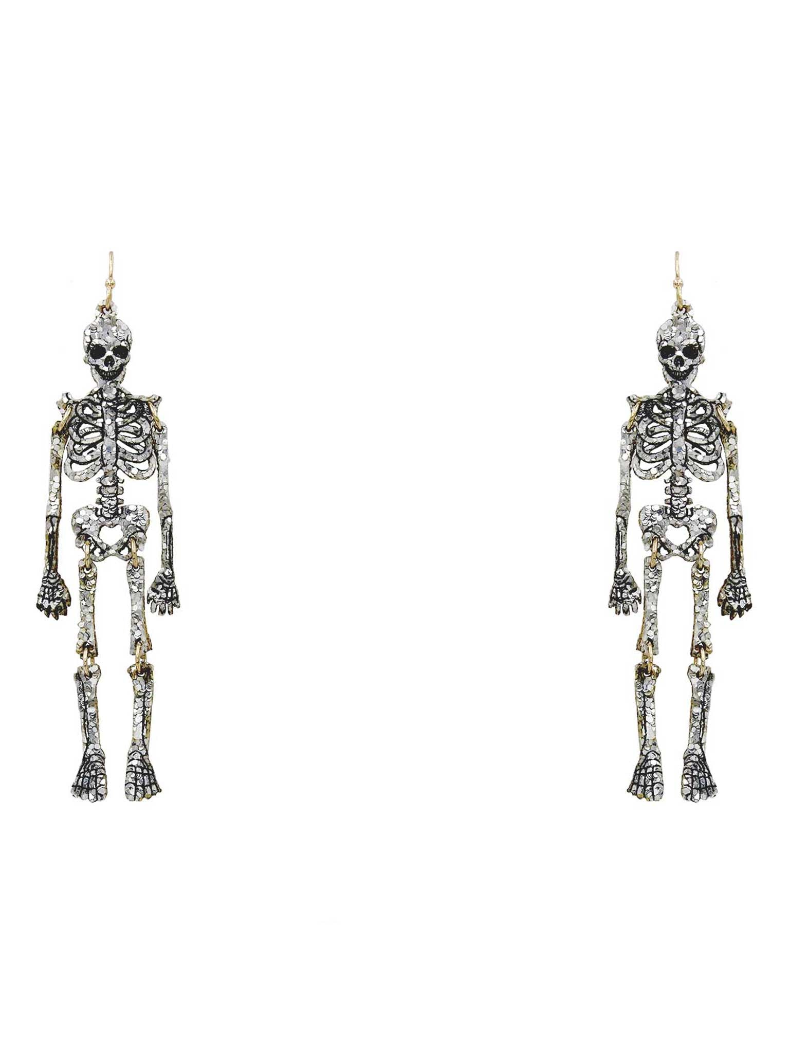 Jazz up your Halloween look with these spook-tacular Skeleton Glitter Earrings! These halloween-inspired dangle earrings feature a glittery anatomy lesson, with a sparkly skeleton design to add some whimsical fun to your costume. Boo-tiful!