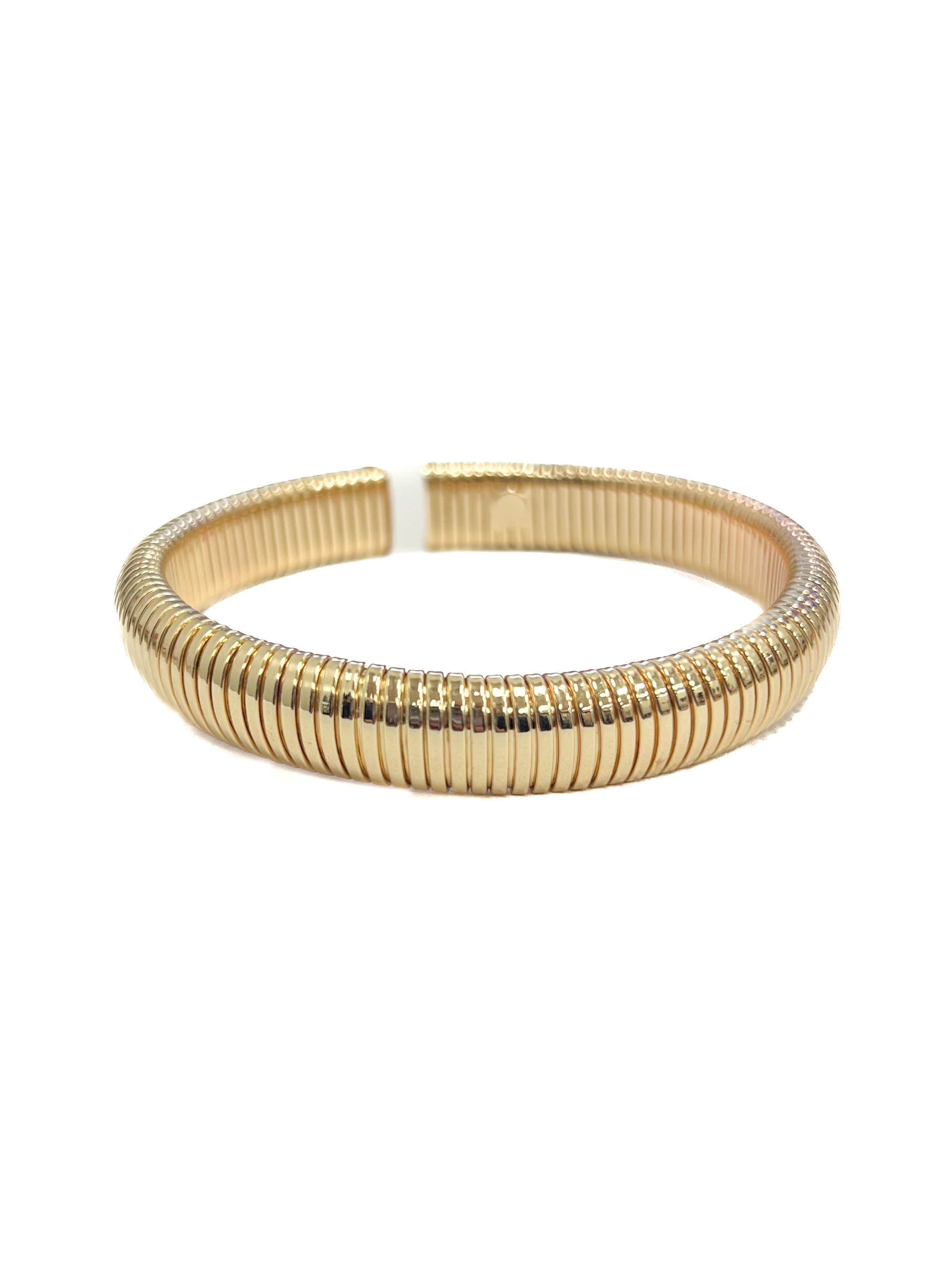 This bangle bracelet is perfect for any outfit! Its stretchy design makes it easy to slip on, while its gold or silver color gives you a classic, timeless look. Rock this versatile bracelet for any occasion!